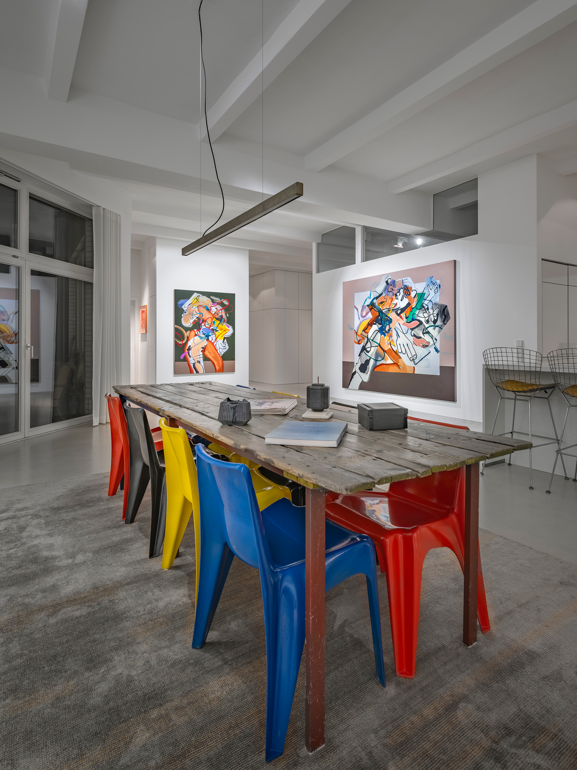 These works engage with key compositional techniques such as sacred geometry and rabatment which helps to guide the viewer’s perception and understanding of the space within the frame.’