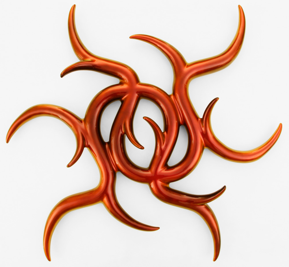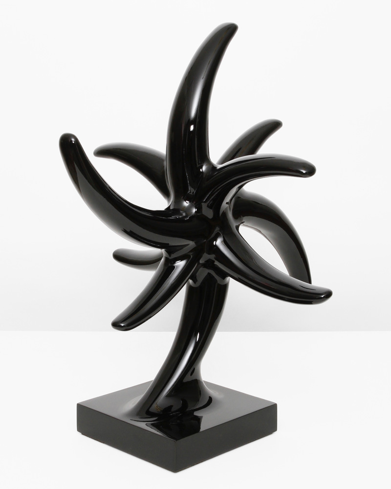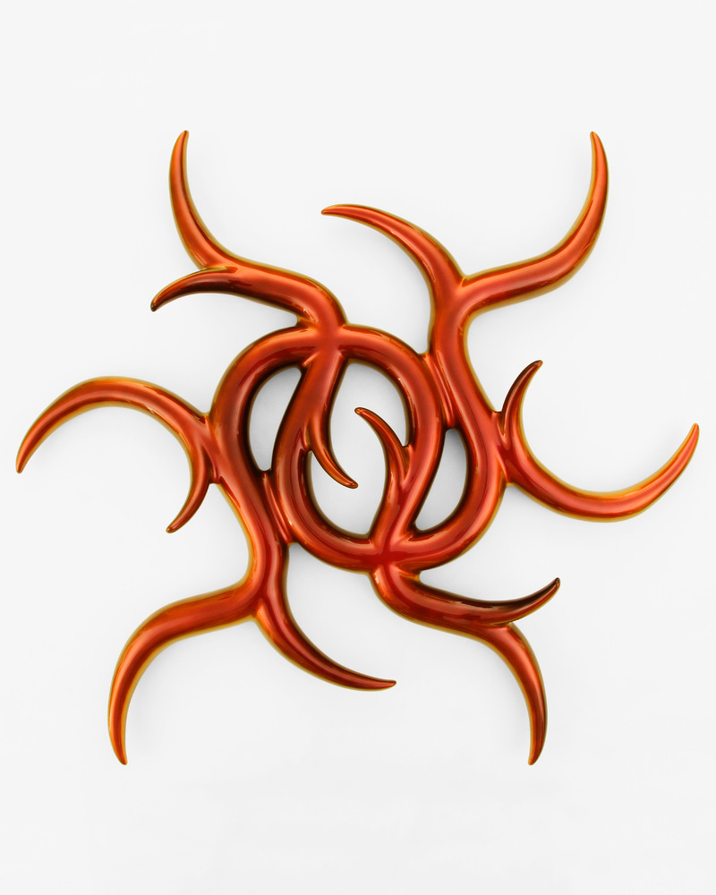 The constant modification and multiplication of individual elements makes Bergmark Näsman's sculptures related like a species whose evolution he actively promotes. His way of working is a departure from the ideal of one brilliant idea. Instead, step by step, he develops the modular construction kit with his own design language. According to the Italian theoretician Franco Berardi, poetry unfolds its power of expression beyond the boundaries of language. Words outgrow their original meaning when recomposed. In this way they reveal a deeper meaning that remains hidden when the language is used properly. Similarly, Bergmark Näsman sets out to question the limits of form. His sculptures oscillate between organic and artificial, soft and angular, inviting and cold. They claim the ambiguous. Where tips sprout from elegant curves, the sculptural attraction is complicated by a repellent component. Are they decorative like a floral ornament, defensive like the spikes on a rosebush, or aggressive like the so-called anti-homeless spikes in public space? matter of interpretation. Bergmark Näsman takes the superficial cool of the blobs back to the original potential of the amorphous form. His sculptures have the attraction of being effortlessly consumable, but their form is more ambivalent and not designed to dictate a specific behavior. At Bergmark Näsman, form is not a lure, but an end in itself. Sensual, suggestive, an invitation to attentive interaction. Still, nothing against the Rio Volt Discman.