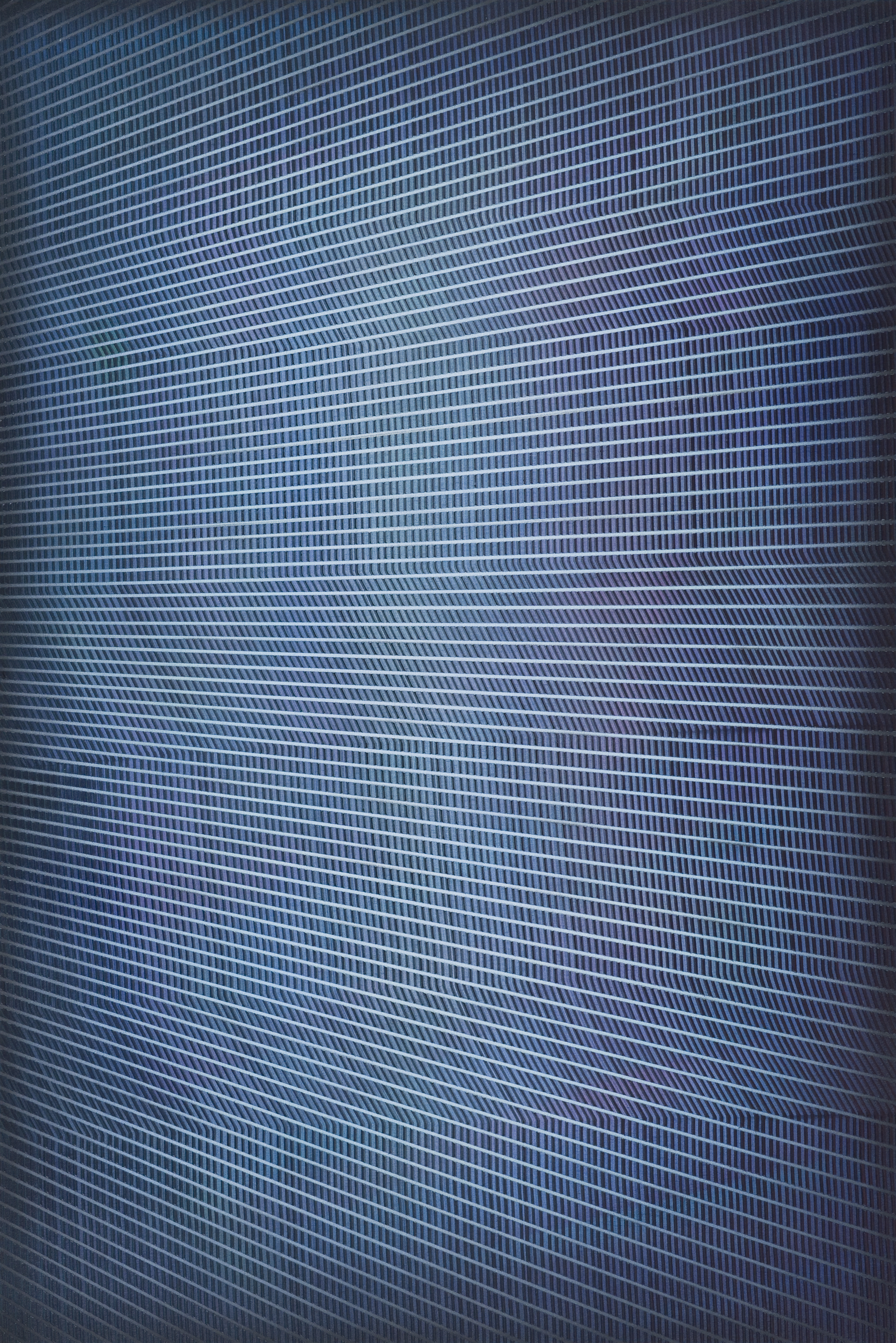 In his texture-focused works, Gruzis creates visually vibrating patterns of paint that emote a kind of hallucinatory sublime.  Radial stripe patterns interfere with layers of acrylic that are "raked" into cascading paths.  Here, Gruzis is exploring how the meditative, quotidian experience of mark making – simply placing one line after another – can create an exceptional haptic vision.  These abstractions shift between resembling windows to implying strange architectural facades, phenomenologically dissolving the barrier between interior and exterior.