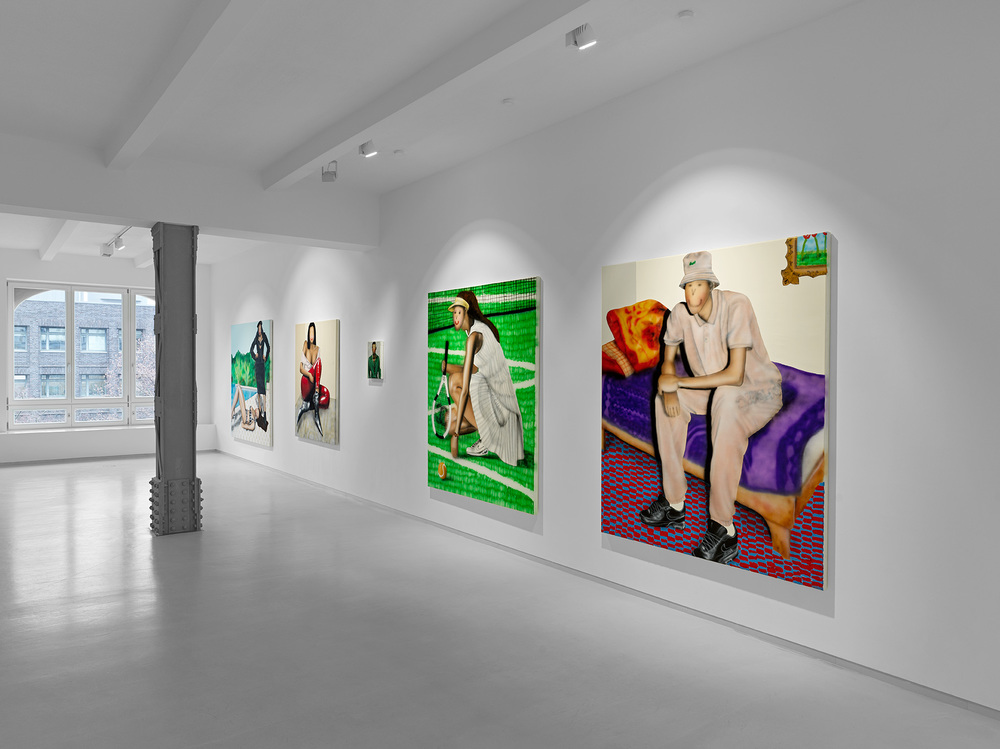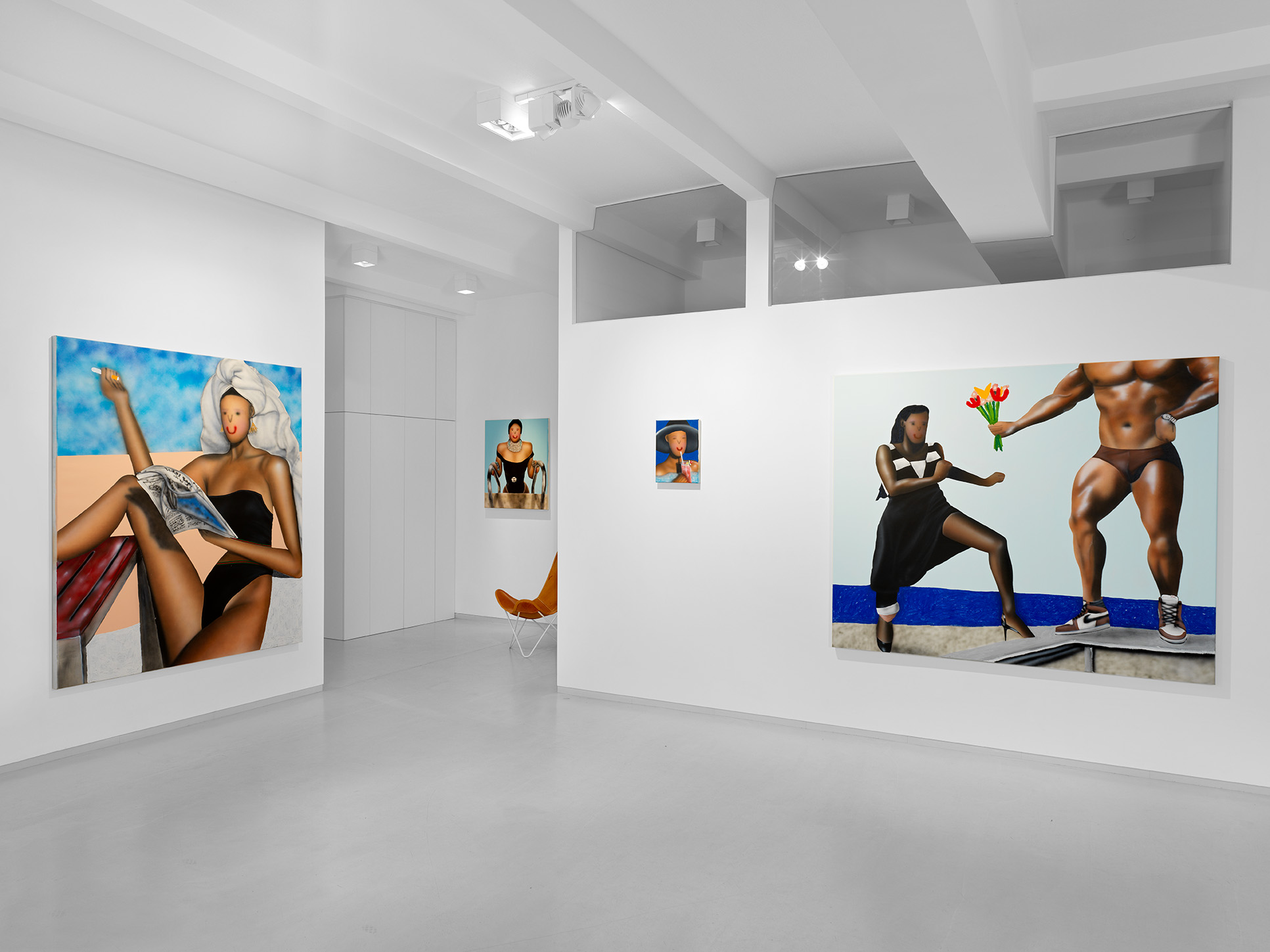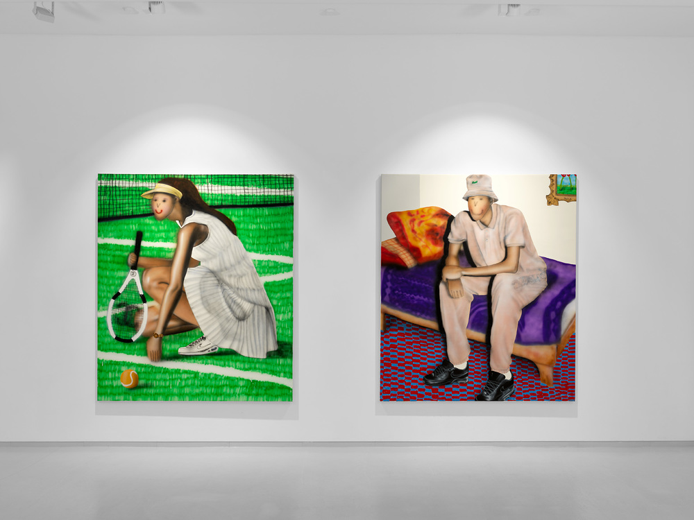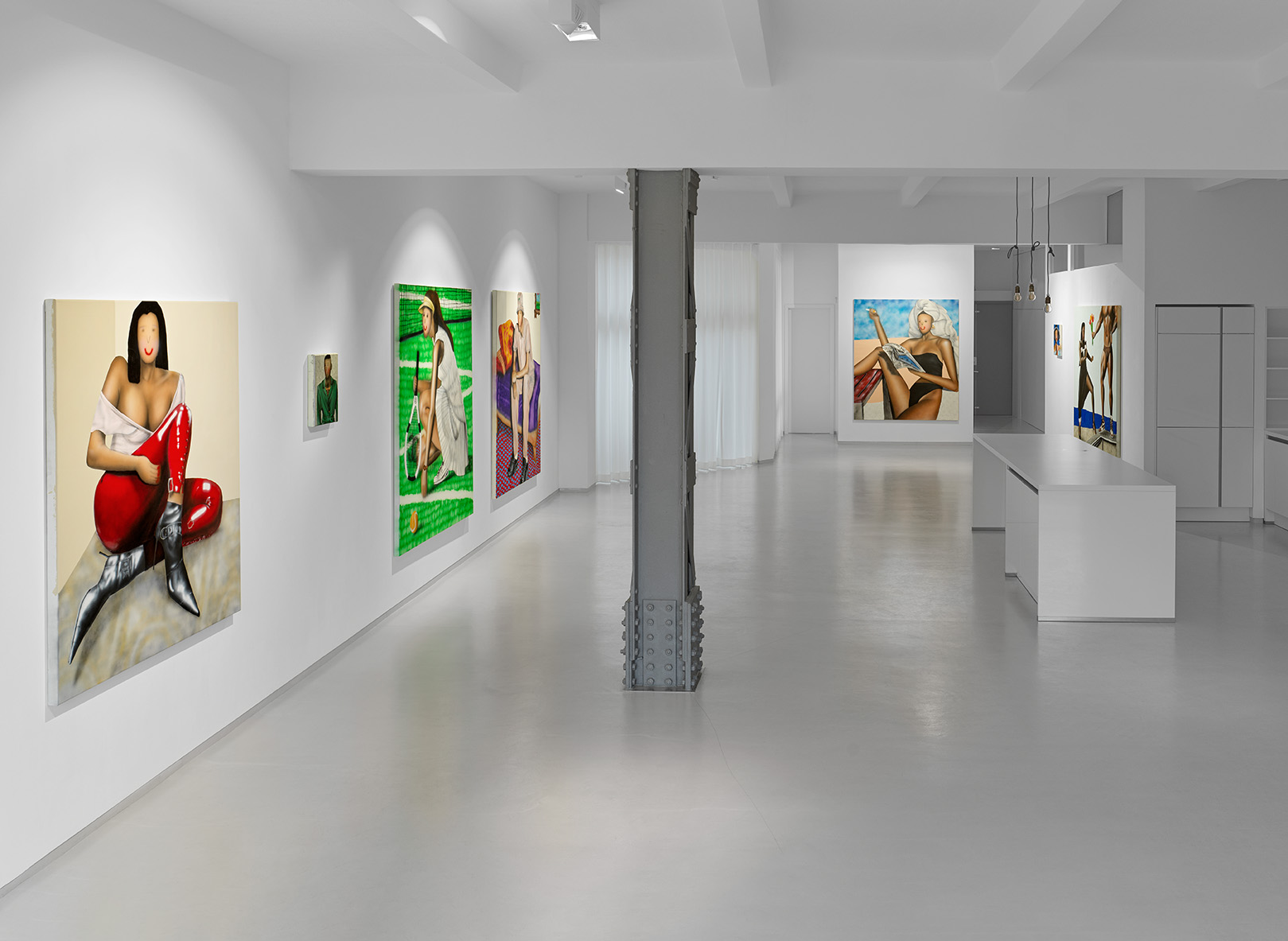 In a world where no one moves in the art scene without being on Insta anymore and some older spirits among us are afraid of TikTok taking over (oh no, not another new platform please) it does not come as a surprise that Contemporary Art came to adapt its aesthetics. Post-digital, post-internet, post contemporary? One of the hottest things in painting right now is the substitution of hair with air: the brush digitized to air-brush. Needless to say that EVGEN’s got that going for him too. Which is nice because it serves his interest in surfaces and plasticity. In his works, strongly elaborated figures are often in relief against a radically plain and simple background. It almost seems like the foreground was cut out of an image with the lasso tool and photoshopped into the painting. This contrast causes the eye to focus – unfocus like the objective of a camera trying to sharpen an image. The artist’s work has been described as »faux-naif«, its content being referred to as »contemporary absurdities«.