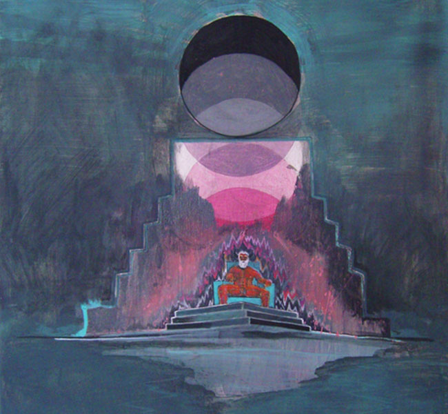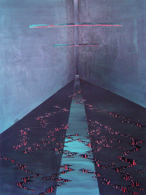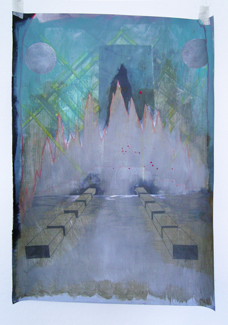 The overriding theme of Marcus Knupp‘s works might best be described as a clash of reality. Knupp is a painter who uses the canvas as a catalyst for dreaming up surreal worlds, mocked up futuramas and distorted, drug-induced dreamscapes that seem to occupy numerous realities at once. Knupp constructs his worlds intuitively from a vast array of source material known to anyone who is familiar with American cable TV, comic books, architectural history, popular music culture, and sometimes porn. This found imagery is combined in multi-layered and labyrinthine paintings, that provide multiple trajectories into space and time and criss-cross various levels of abstraction - a surrealist trick, one might assume - seducing viewers to enter and eventually even loose themselves within the mystery of his worlds.