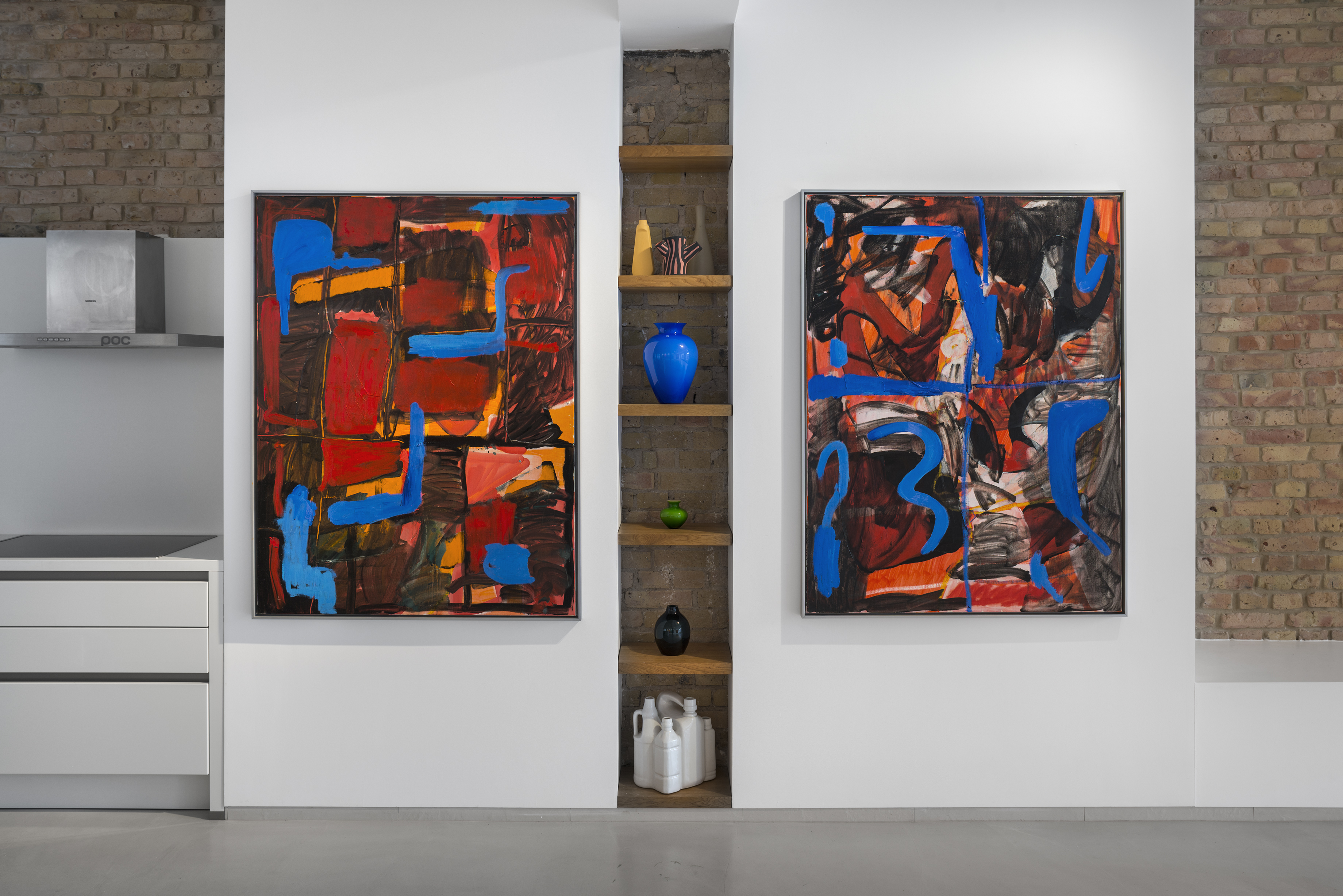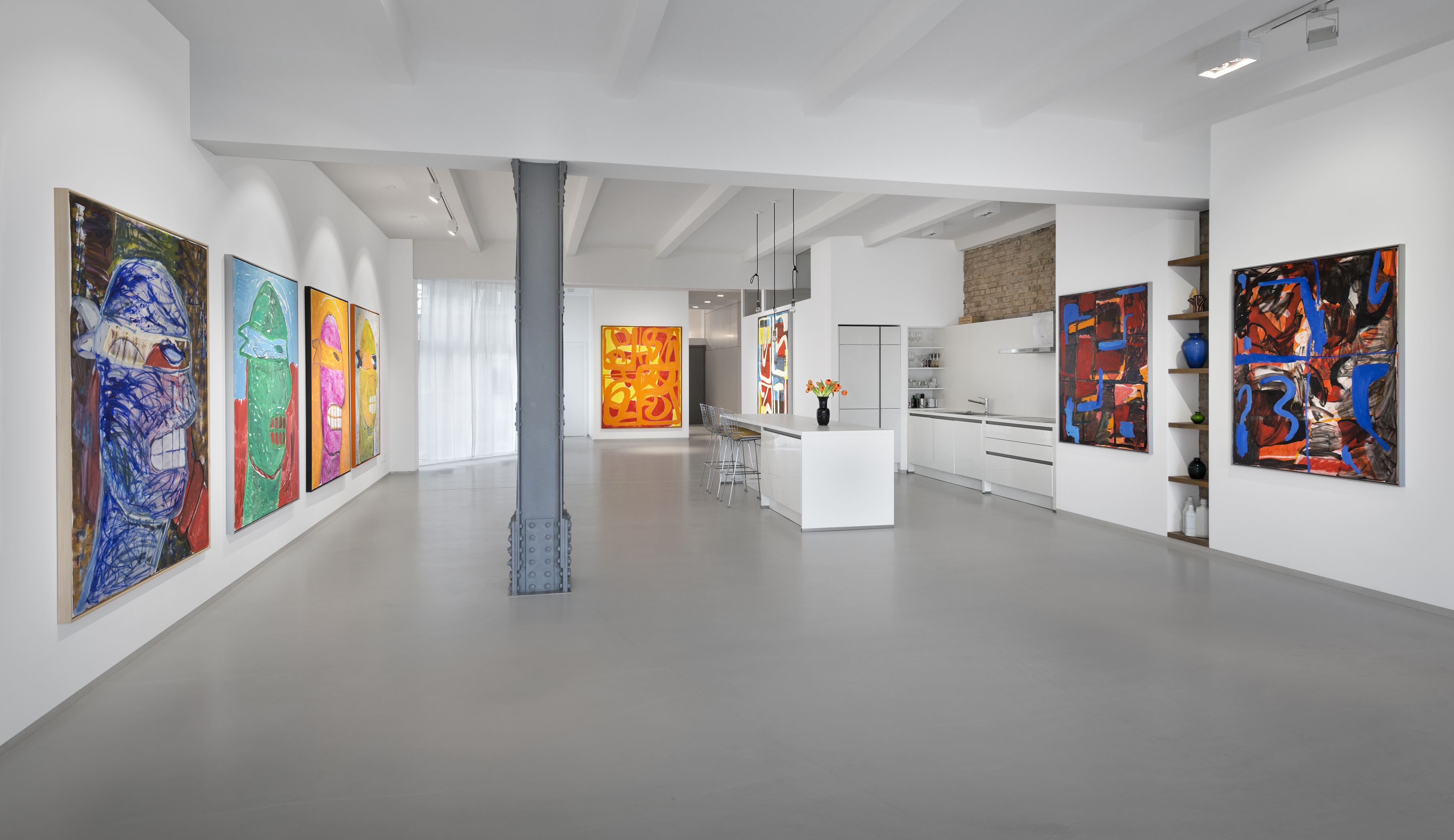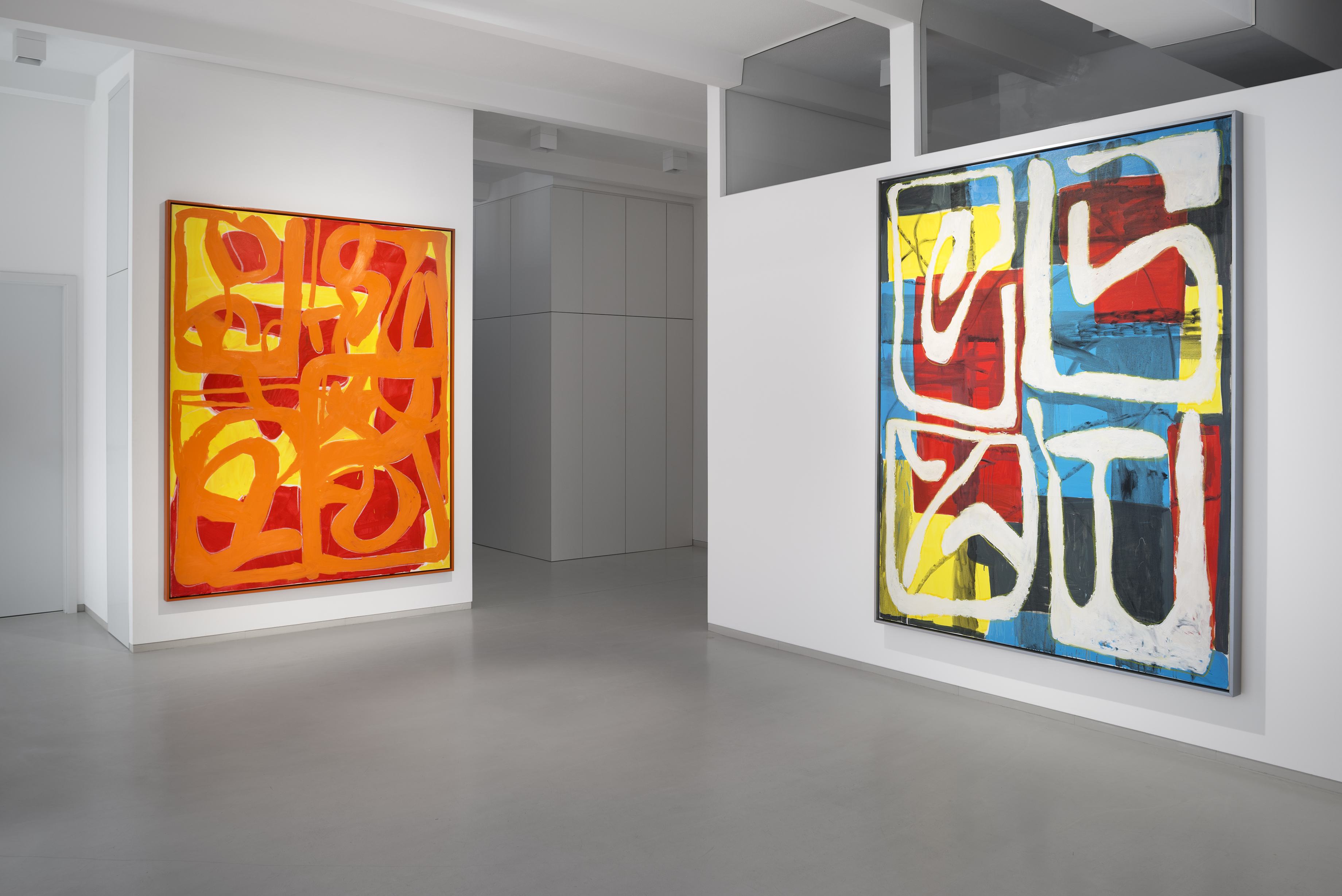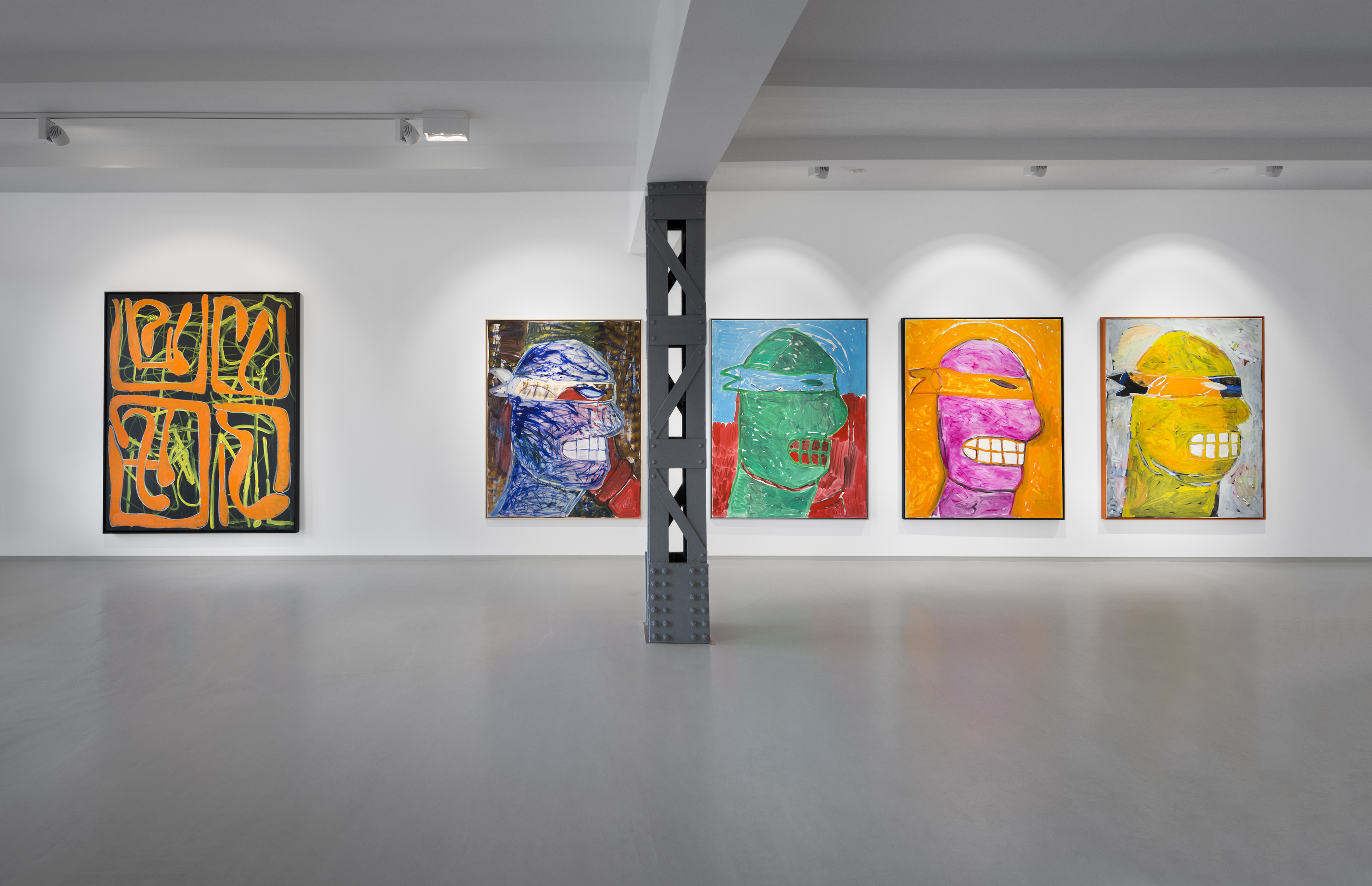 Where the first part, consisting of the anthropomorphic turtles, works through pop-cultural painting, and systematically reacts to the production of mass media, the second part of the exhibited paintings consists of works which rather find inspiration in the avant-garde and elite painting culture represented by a formal language which draws on the hundred-year history of abstract painting. Lukáč balances between form and formlessness, and his canvases toe the threshold between the amorphic and the moment when a form emerges and takes shape. He is interested in manifesting those shapes which culture perceives as artificial, as part of a wide repository of signs and attributes of abstract painting. In his painting compositions he places emphasis on the most basic units, referring to the unconscious in the image sphere of the abstract tradition. As usual, there is a motif whose potential is varied and explored until it is exhausted. These motifs are layered and schemed within a matrix which surfaces as a well-known, almost emblematic motif for modernism. These new image compositions combine various visual languages of the past, and reconfigure them for new contexts.