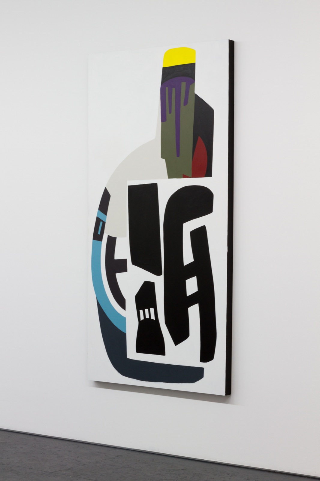Pozanti’s practice derives from the literal development of her own language, comprising of a set of over two dozen clear and identifiable characters/shapes, layered on top of each other with a loose yet distinct grammar.  Her construction of the two dimensional art object is a poetic gesture of semiotic assembly.  The shapes are moderately manipulated to flow into each other, interlocking elegantly on top of and within themselves, while still maintaining their defined formal characteristics.  Colors change, influencing the meaning of the shapes, shading their emotional impact, while accentuating the constancy of the form; an exposition on Pozanti’s idea of a complete form language.