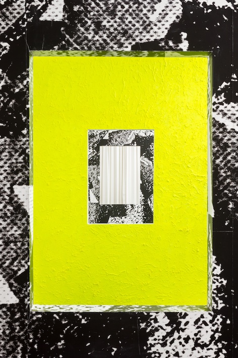 At 8:32pm on the opening night the space will fall dark, and as a strobe light emerges, Born in Flamez will perform a song, interacting with the space, the cutouts in the walls and the reflections of light.