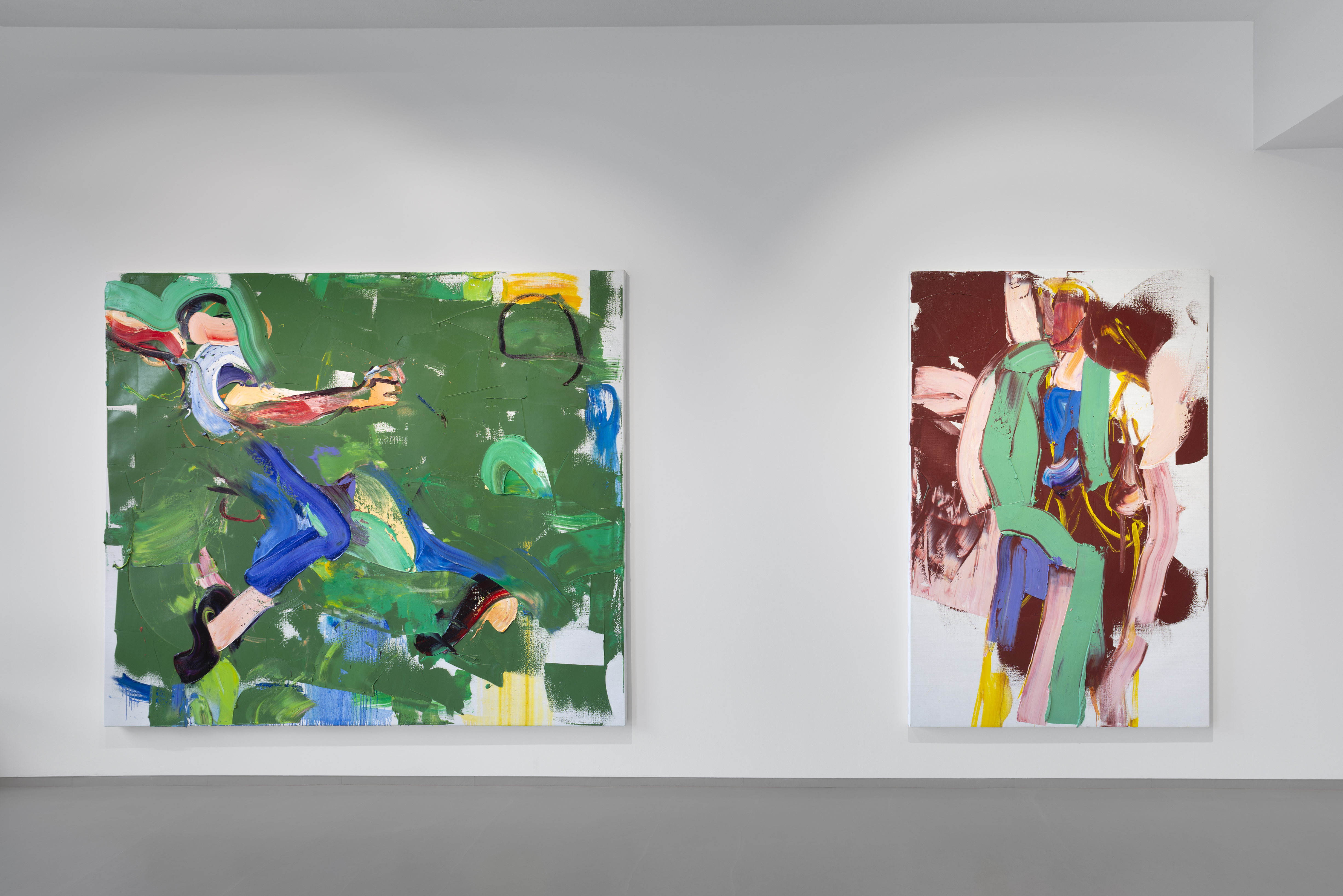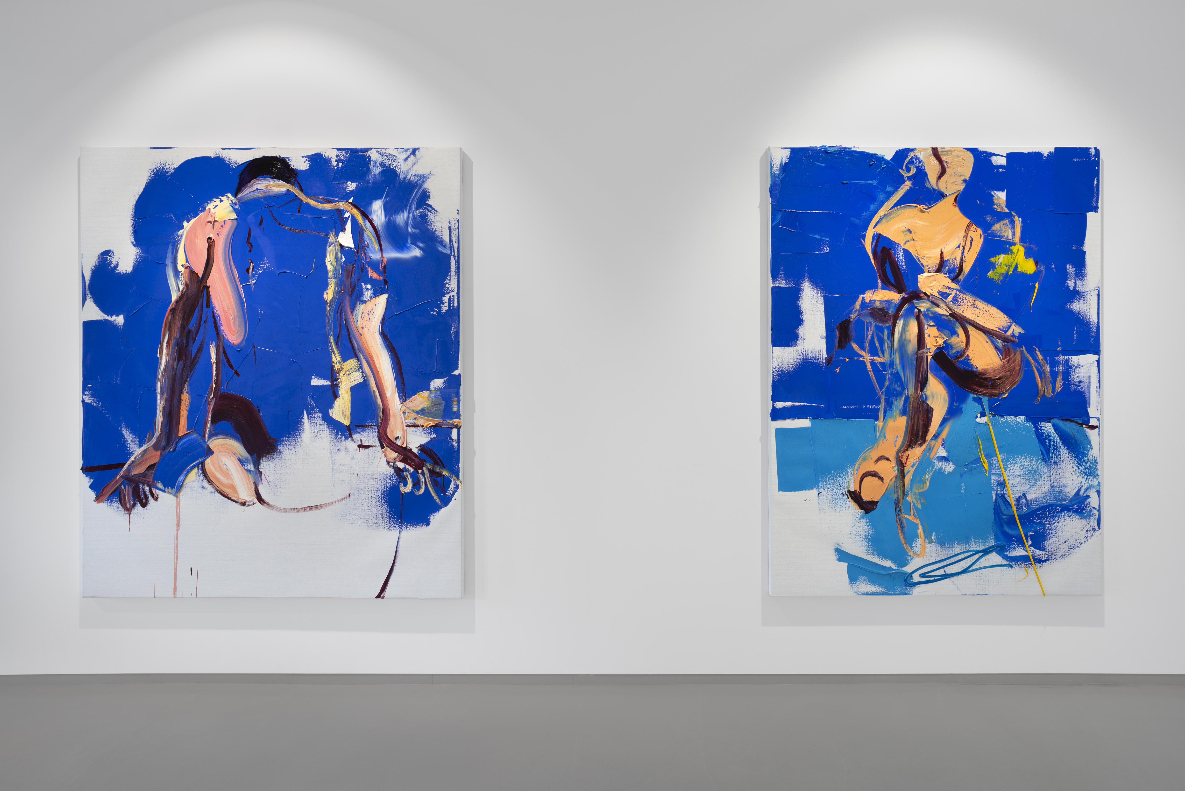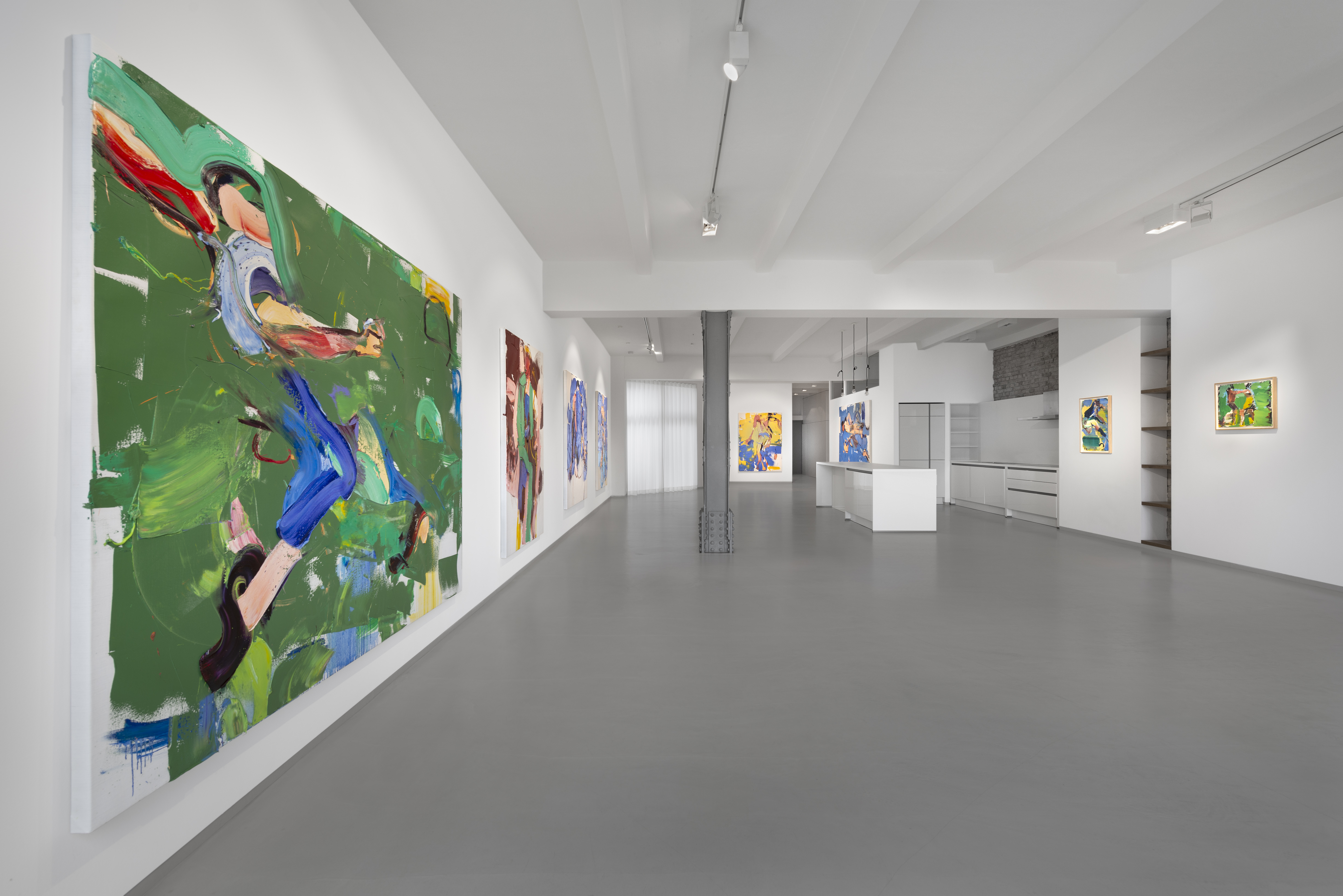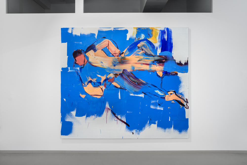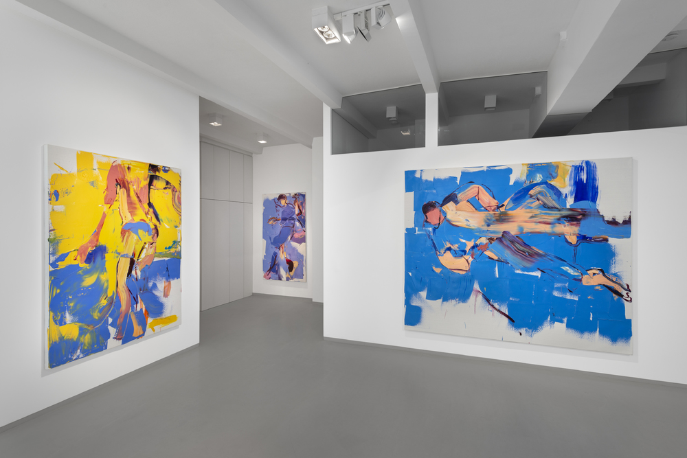 The painted space and the relationships between form and color are at the center of Hosu's artistic interests. But there is nothing cerebral, nothing artificially theoretical about his painting. On the contrary. Inklings of human bodies become more concrete or more abstract. They materialize or dissolve. It's about different degrees of presence. Hosu ​​thinks in colors, movements and surfaces. He takes color and its materiality very seriously. In this way you can speak to paintings as if you were speaking in different languages. These images vibrate. The colors are sprayed, applied with a brush or squeegee. The artist is not afraid to jump. And he has mastered the art of precision landing. In this way, Hosu finds images for situations that you wouldn't otherwise get a picture of.