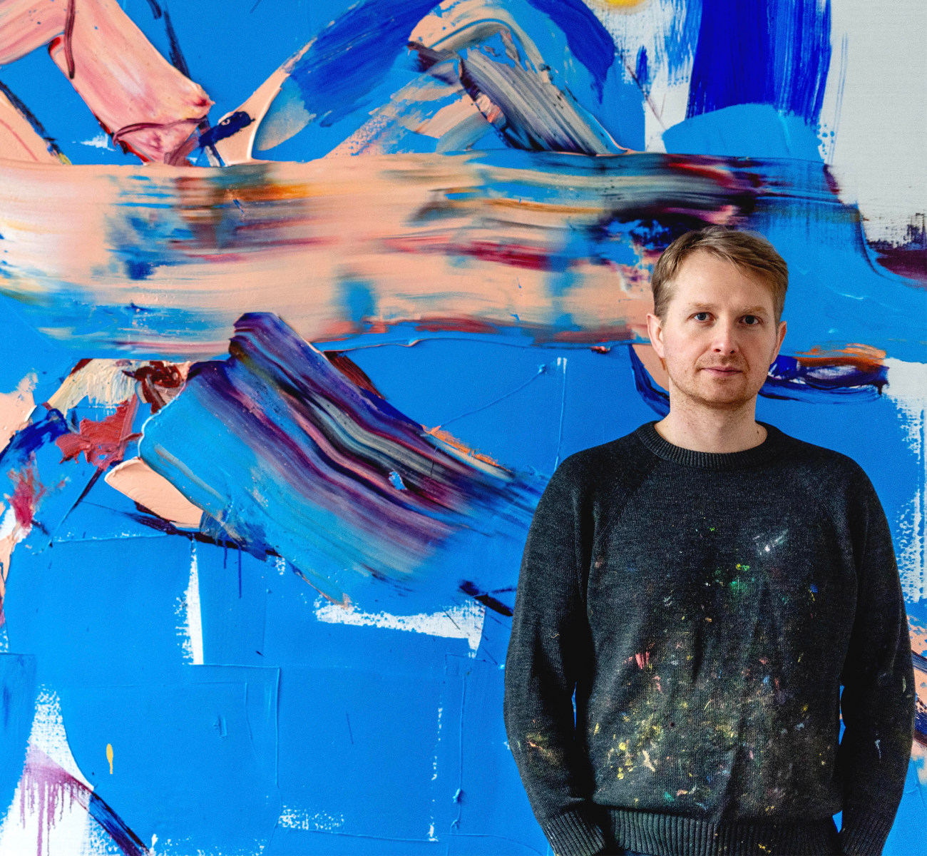 “Painting is my language,” explains Sebastian Hosu. In his studio on the site of the former cotton mill in Leipzig-Plagwitz, the artist, who was born in Satu Mare, Transylvania in 1988, produces predominantly large-format canvases using oil paint. Hosu ​​works with the wet-on-wet technique. To do this, technical expertise, decisiveness and intuition must come together at the right moment. Several layers of paint are quickly pushed over or next to each other before they dry. “I paint like in butter,” explains the artist. “I model and paint.” In the process, Hosu condenses his canvases and at the same time allows them to breathe. With brush and squeegee he breathes a soul into them. That's what makes his art magical.