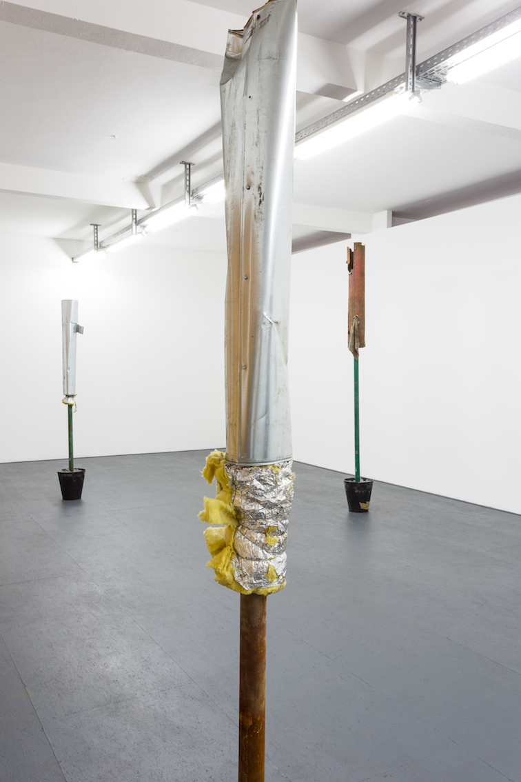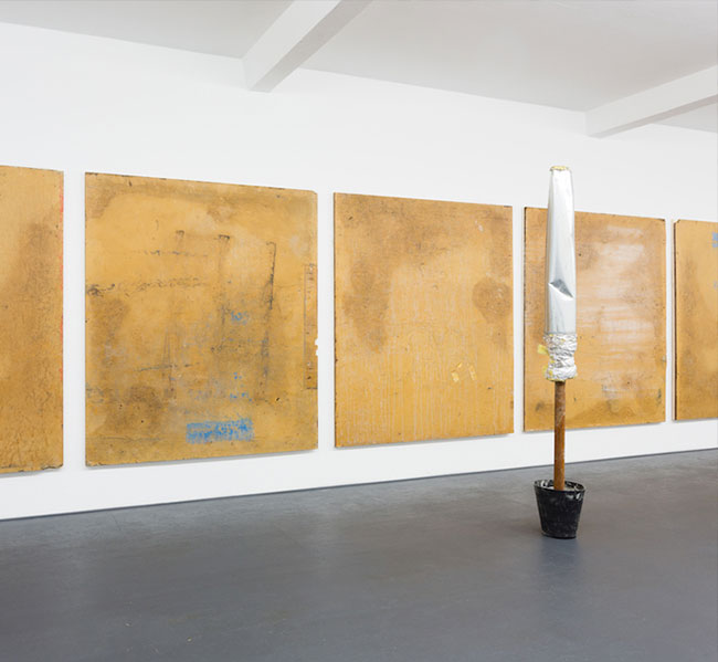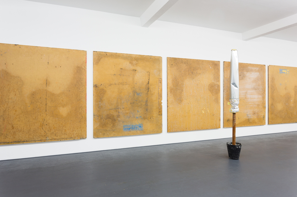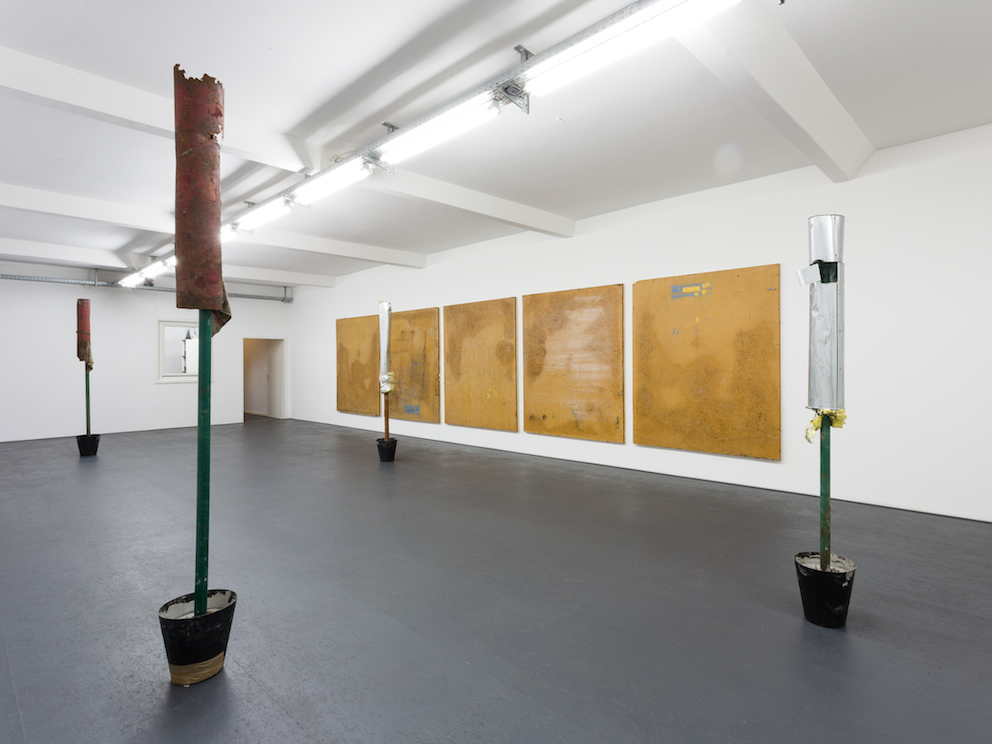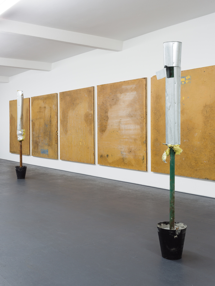 For this exhibition, Rees has developed a relationship with local Berlin industrial sites, mining the material for his sculptural pieces and temporary hoardings works.