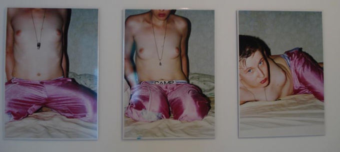 Anchored in a loose connection between the languages of photography, drawing and performance, Grit Hachmeister's works convey a ruthlessly ironic view on the body and its desires. Persistently, her works cross the lines of conventional sexual imagination and conceptions of beauty, but not as an end in itself. Her motivation is rather to extract an index of the ambiguity of bodily sensation revealing the less visible and underrepresented. Counteracting a rude fuck with her characteristically naive, comic-inspired drawing style methodically confuses conventional notions of innocence and guilt. Hachmeister's portrait of a half-naked girl equipped with boxer short and gloves in front of a wall covered with porn, complicates notions of femininity.