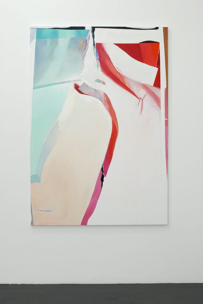 Alex Hubbard’s paintings descend from his video works in which performance is the central communication. Layers of material depicted on canvas appear to absorb and bare the momentum of action. Consequently, Hubbard’s final imagery retains the effect of performance and movement. Folds, cuts, tears, and flips illustrate moments of disruptive action as if frozen at the instance of infliction.
