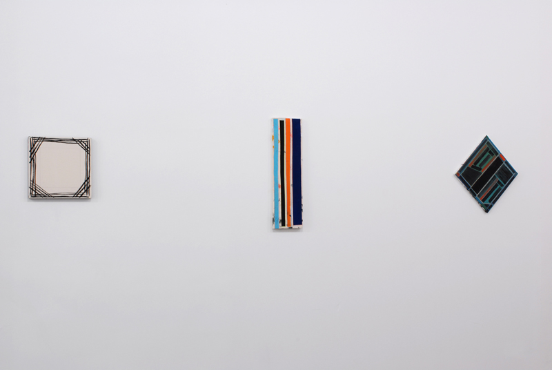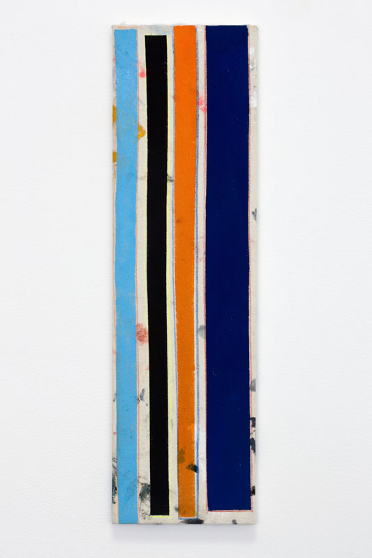 Matt Connors tackles easel painting with color and symmetry-- or the dismantling thereof. In the small paintings on view, Connors supplements or deducts elements of "the mathematical grid" by animating horizontal, vertical and diagonal axes with strips of color. Resulting echoes of line confirm a minimalist submission to the flat plane while the naivete and crudeness suggested by brushstroke do not preclude effort.