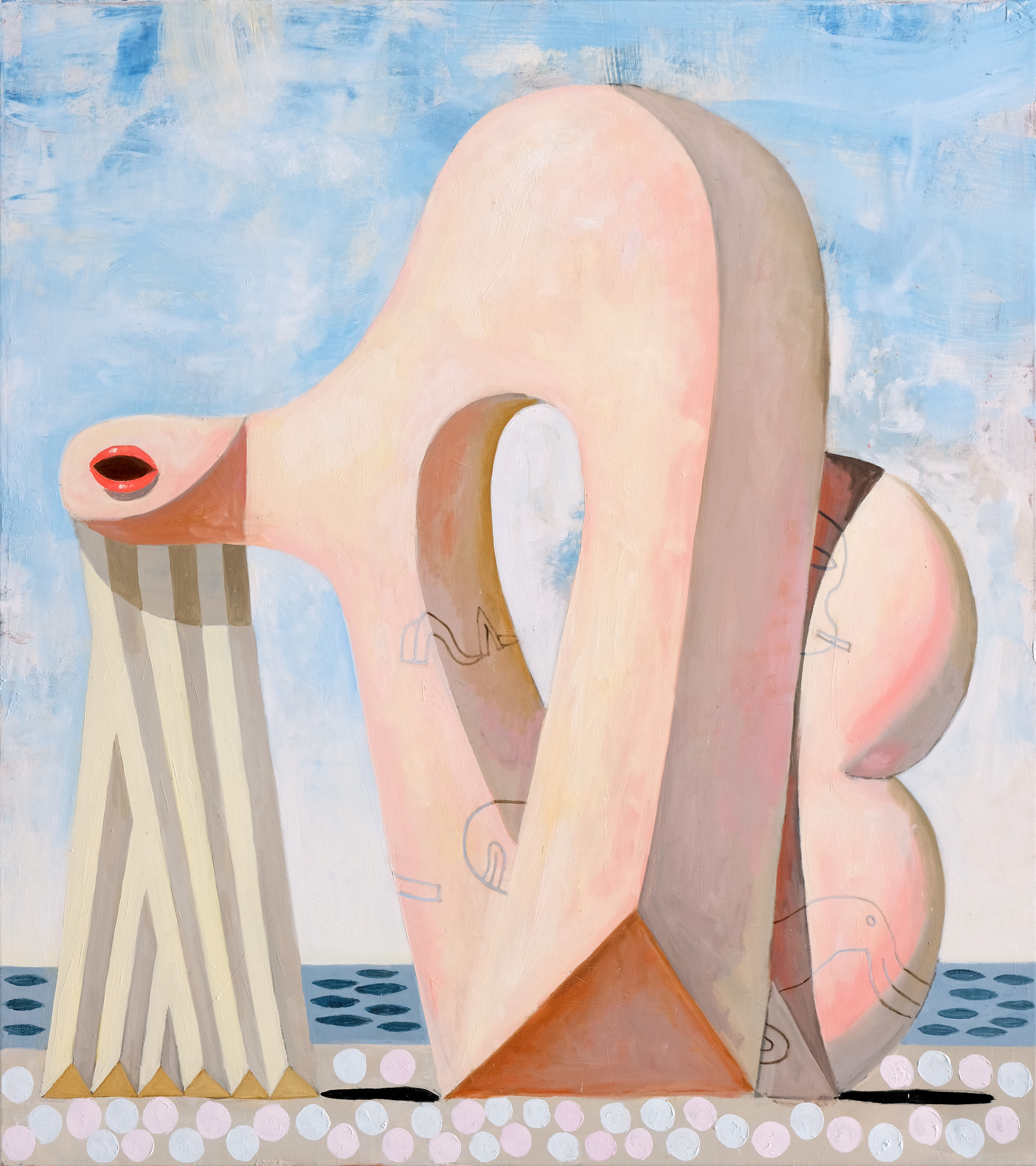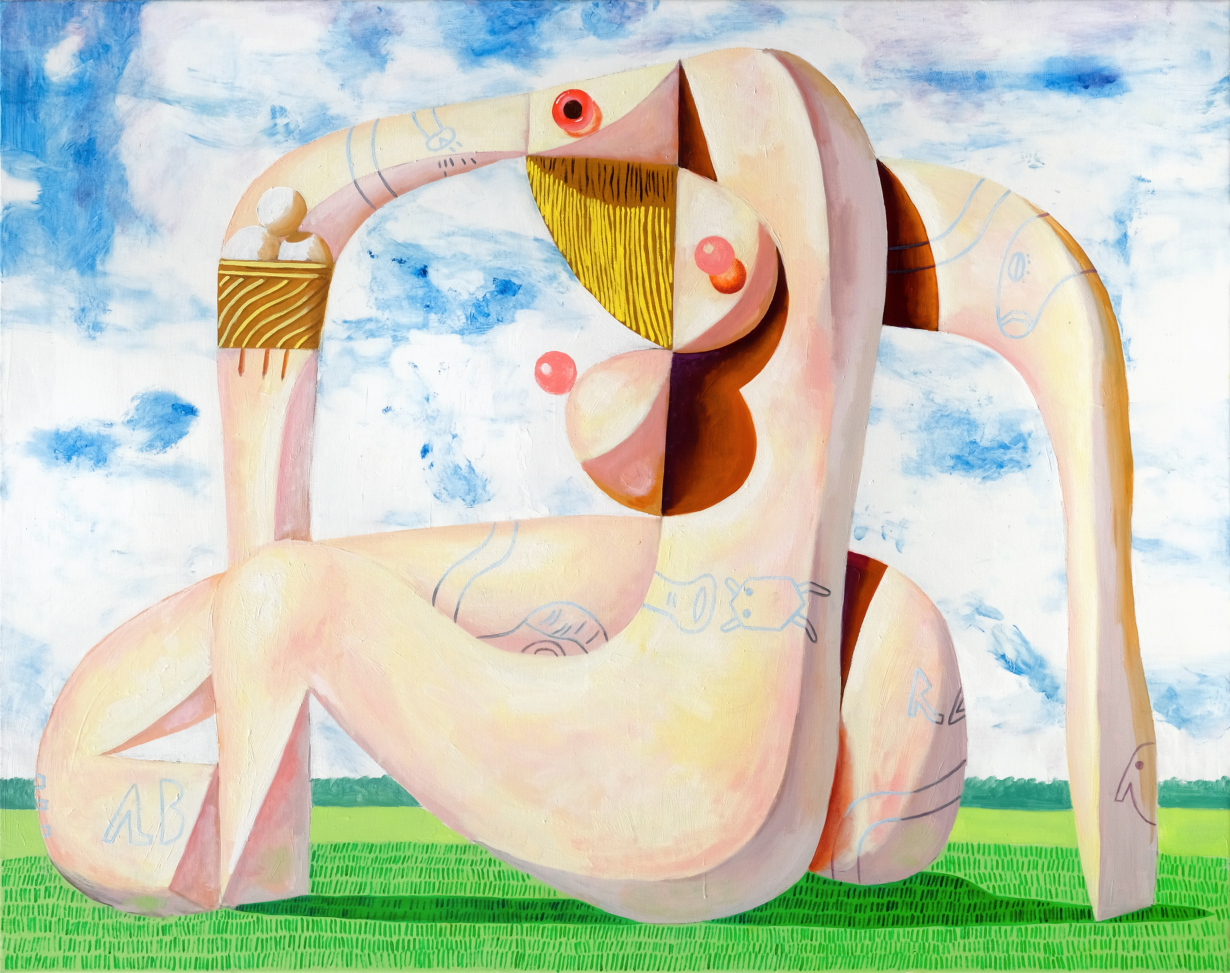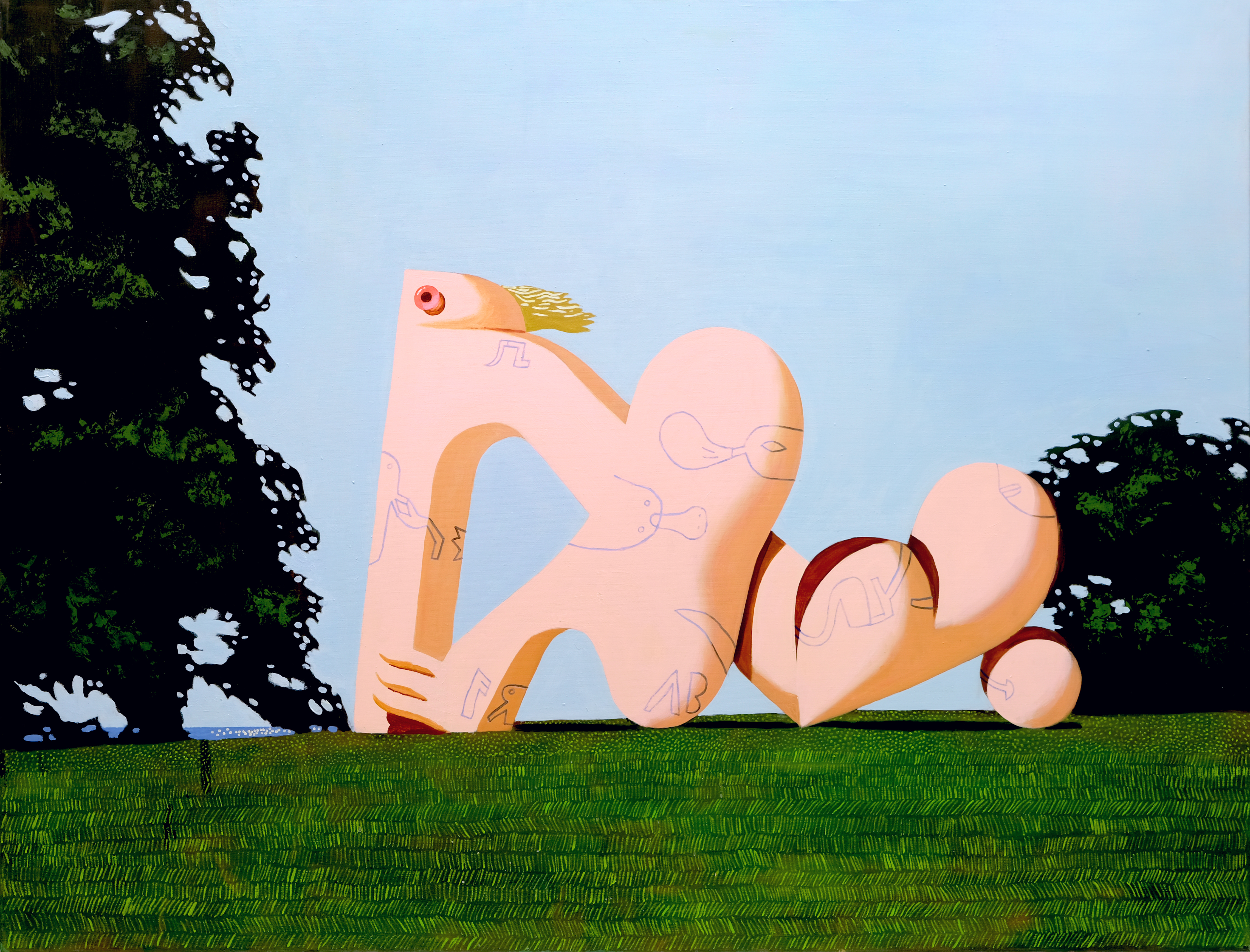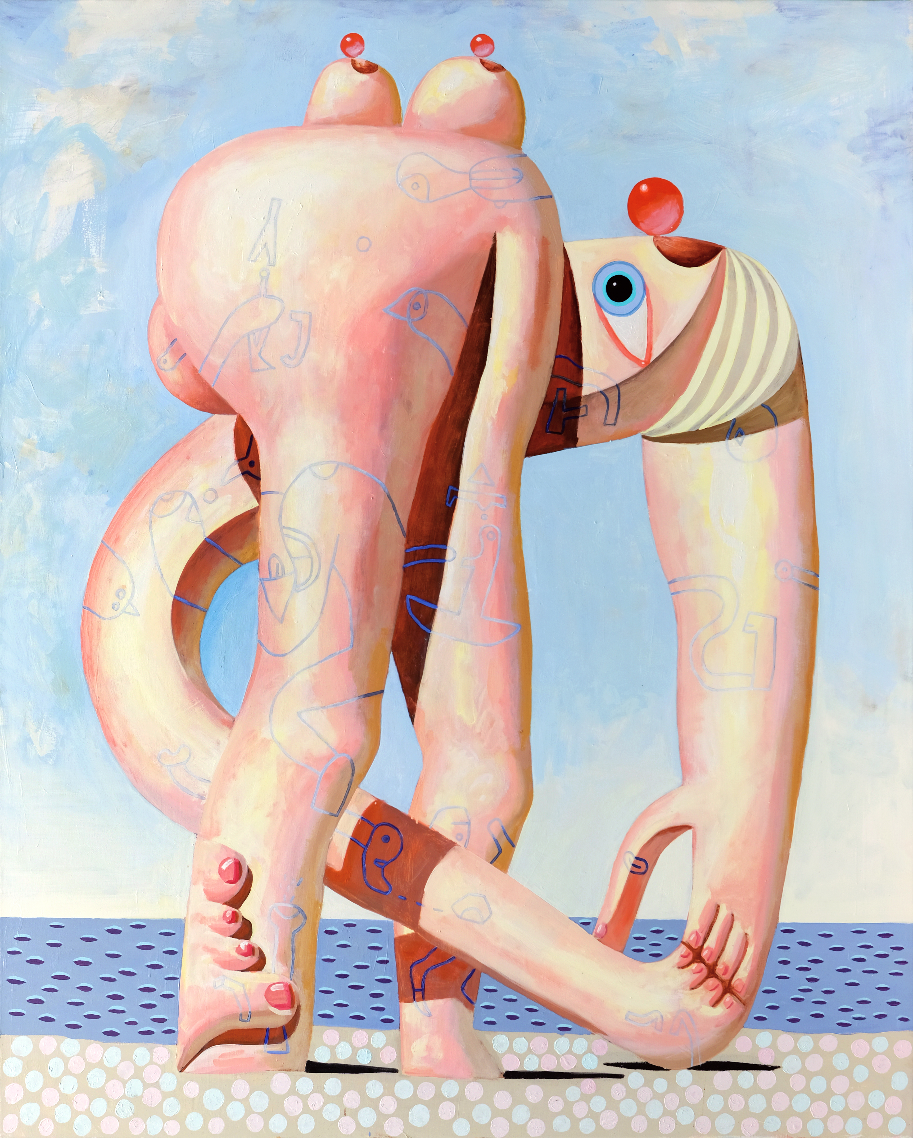 Mostly consistent proportions give the impression that the creatures lie between figure and sculpture. The sculptures in the picture have a life of their own - a vitality that seems to emerge through pressure from within. They play with their own limits, follow their own inner logic.Yet the viewer is predominantly confronted with disturbing elements.