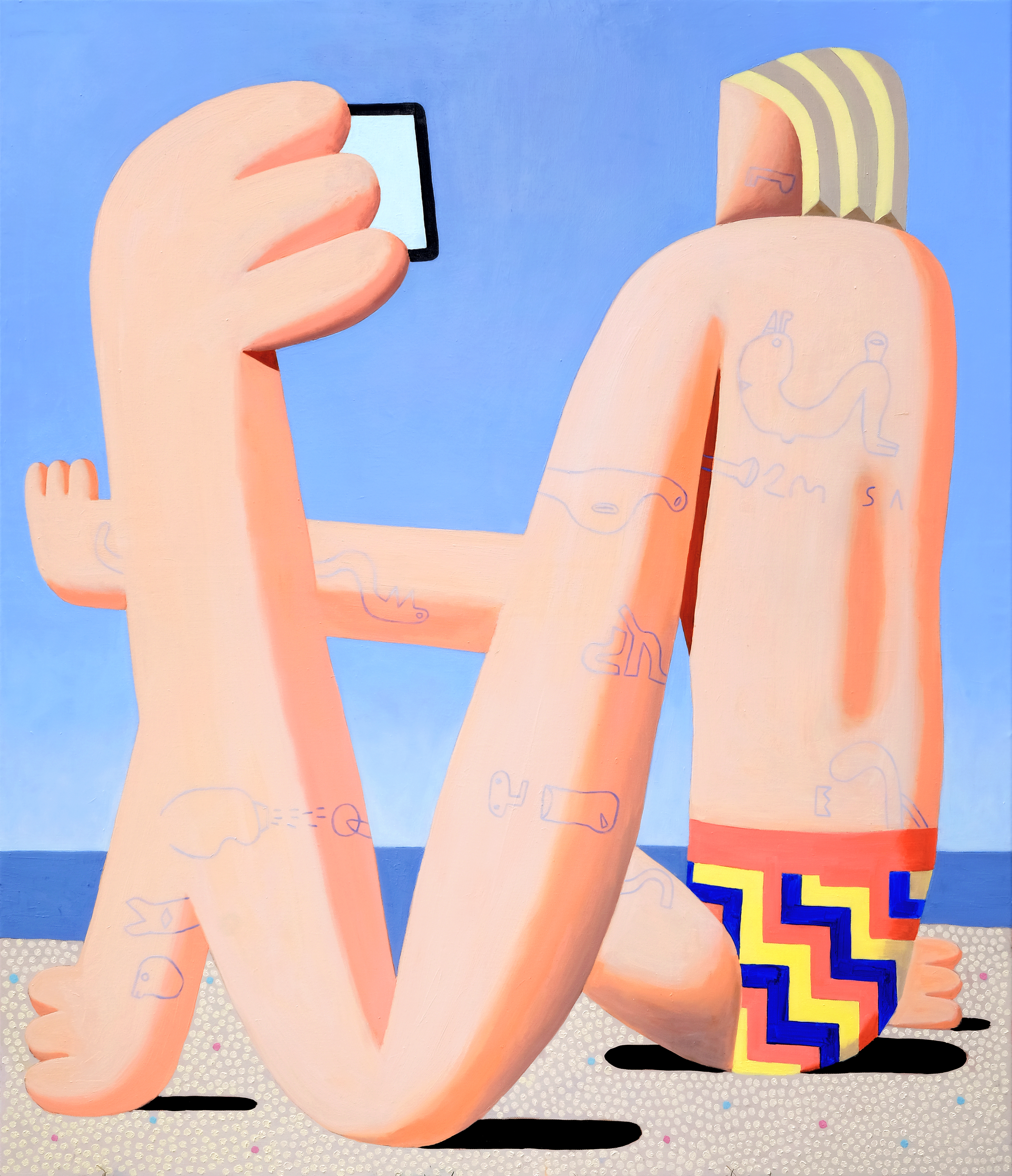 The artist is showing a current series of works with symbolic beach motifs in oil. Bodies with exaggerated volume detached from perfection, reason and regimentation. A strongly geometric conception of nature as well as the representations within it pervades the works. Park reduces the supposed beach visitors to the elements that are important to him.