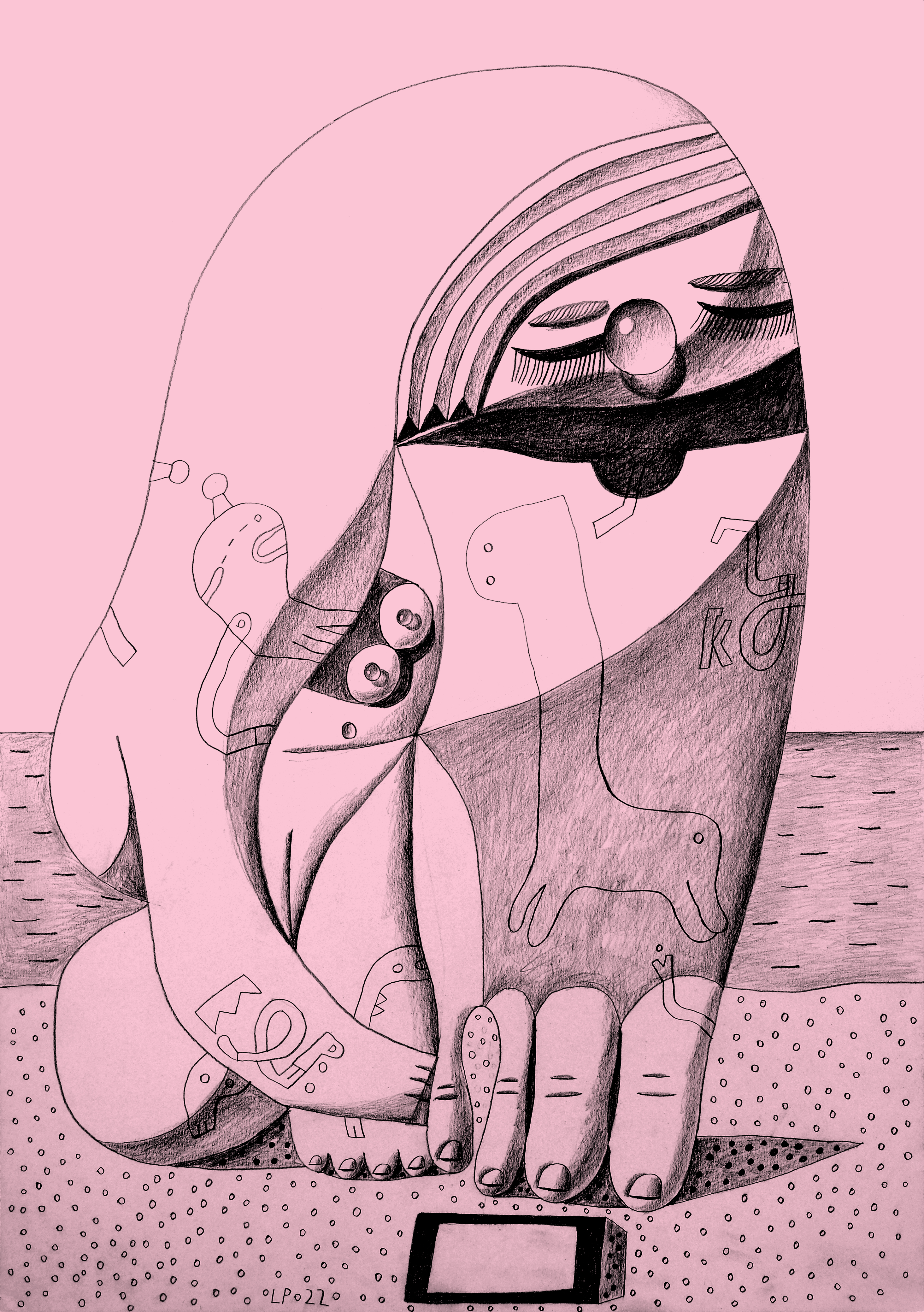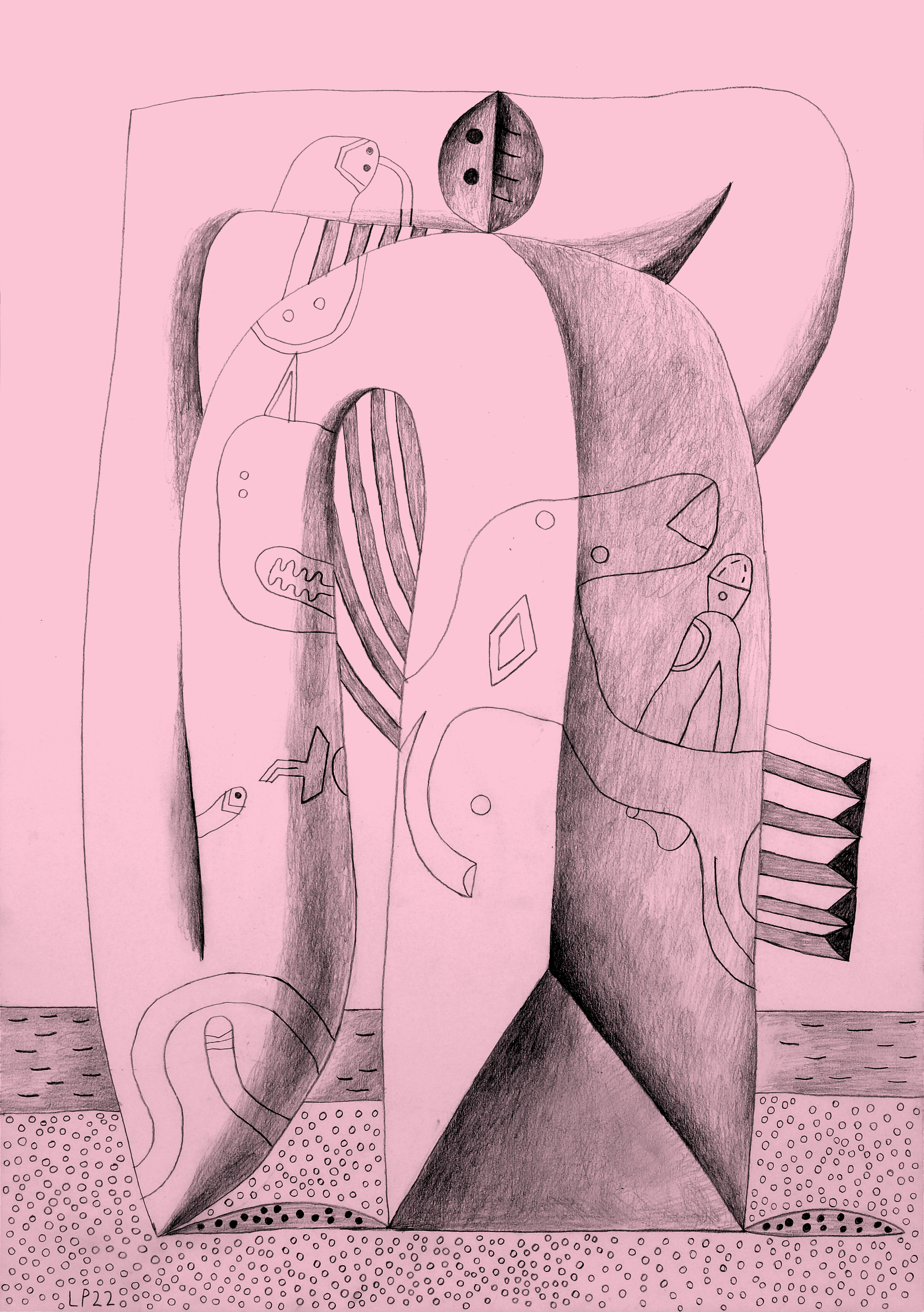 Light pencil drawings represent constantly recurring tattoos. They are a mixture of figures and glyphs; their symbolism is ambiguous - their impulsive use, a way of spying on oneself. They describe signs, insects, fragments of diagrams or maps, rivers and trade routes. They move in a non-hierarchical space - without beginning or end.
