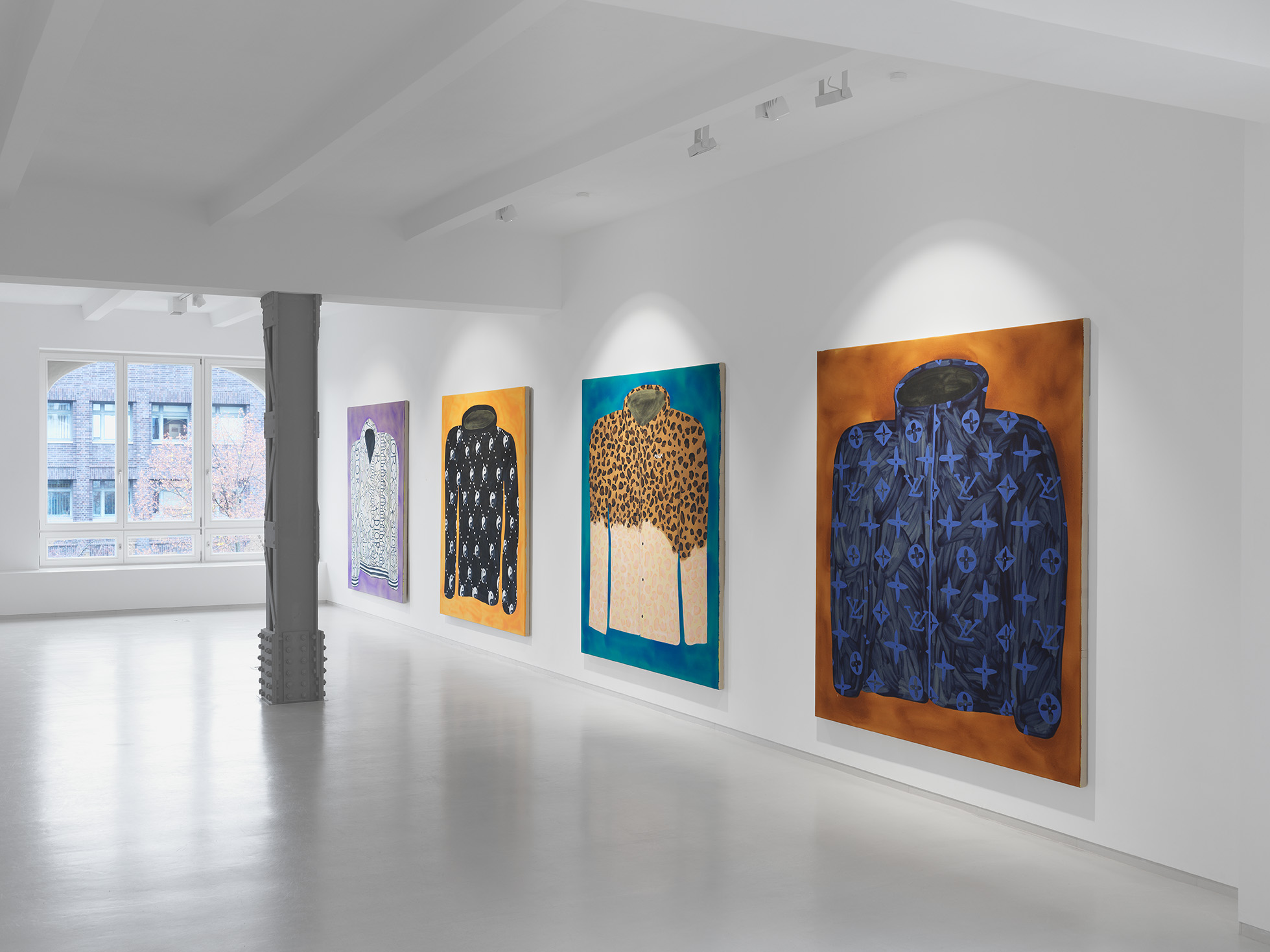 For a year he painted portraits of the members of the American hip-hop trio Migos, then he continued with their clothes. Fish has stayed with fashion because the latest material is always available and is constantly being replenished. Fresh drops become fresh paintings and fast fashion becomes fast painting. He chose to paint naively in a childlike style, like so many young artists who are at home on the Internet. The perfection on the Instagram platform is countered by an innocence that cannot even lead to misunderstandings because the pressure to perform has been removed.