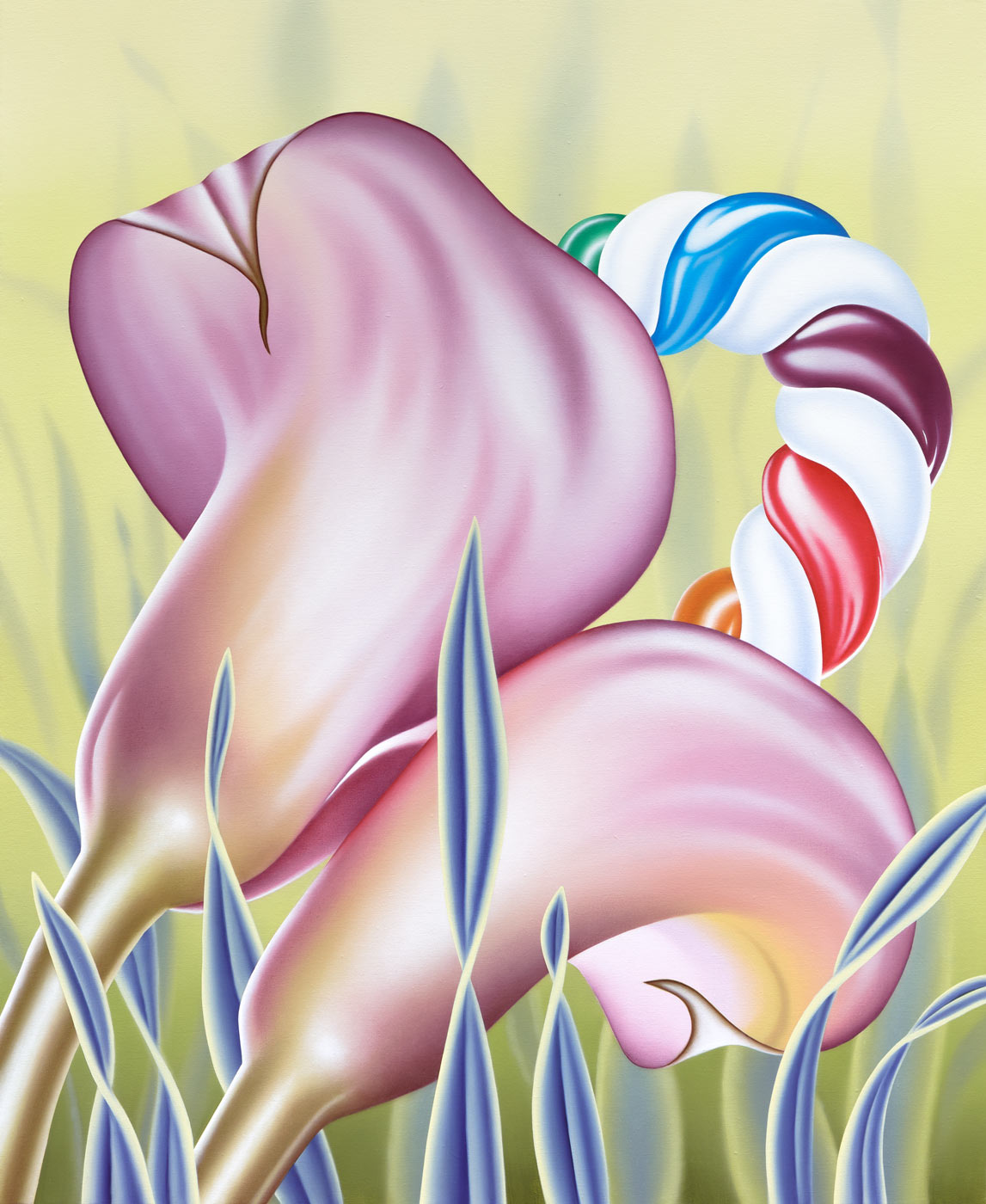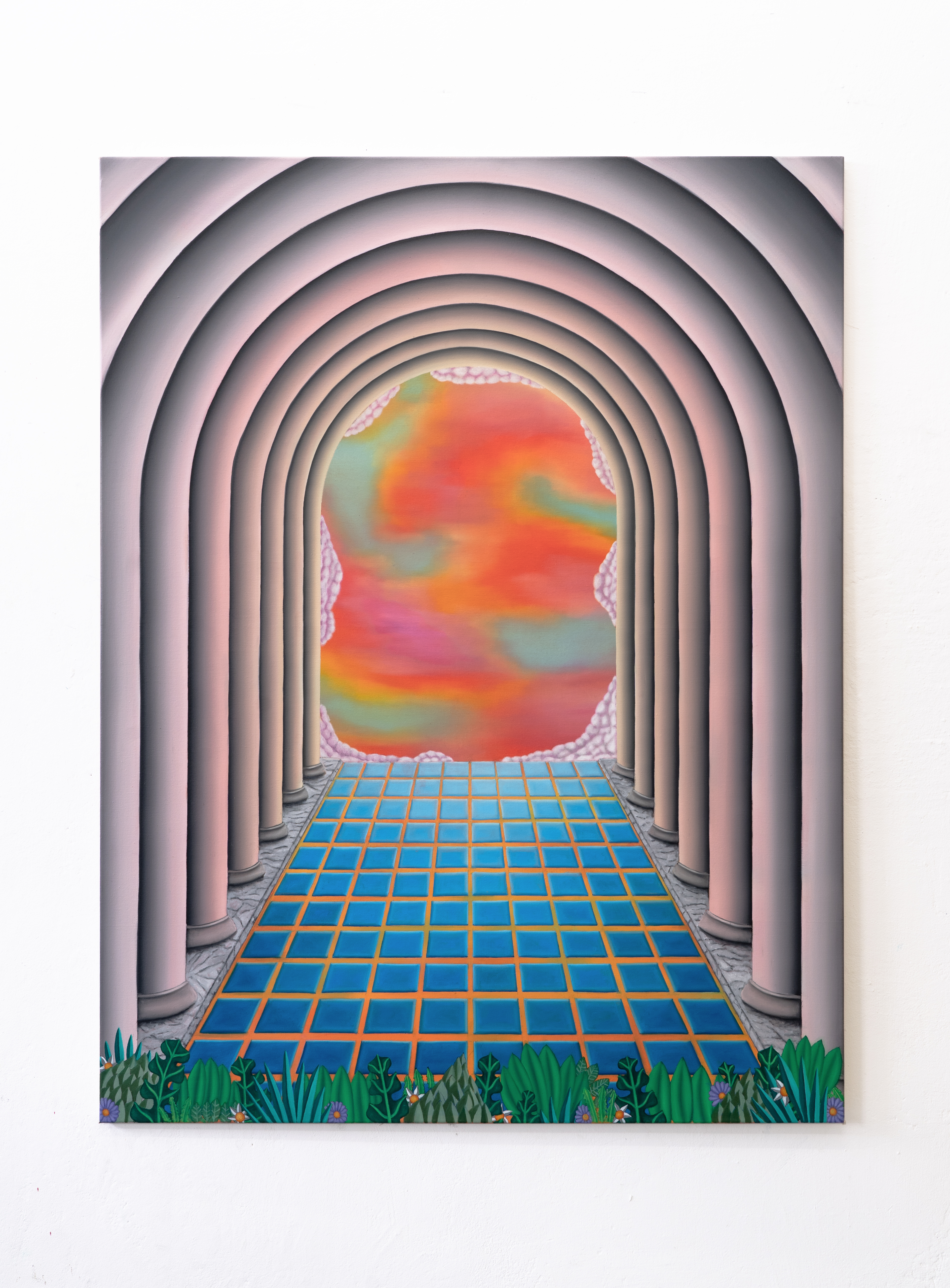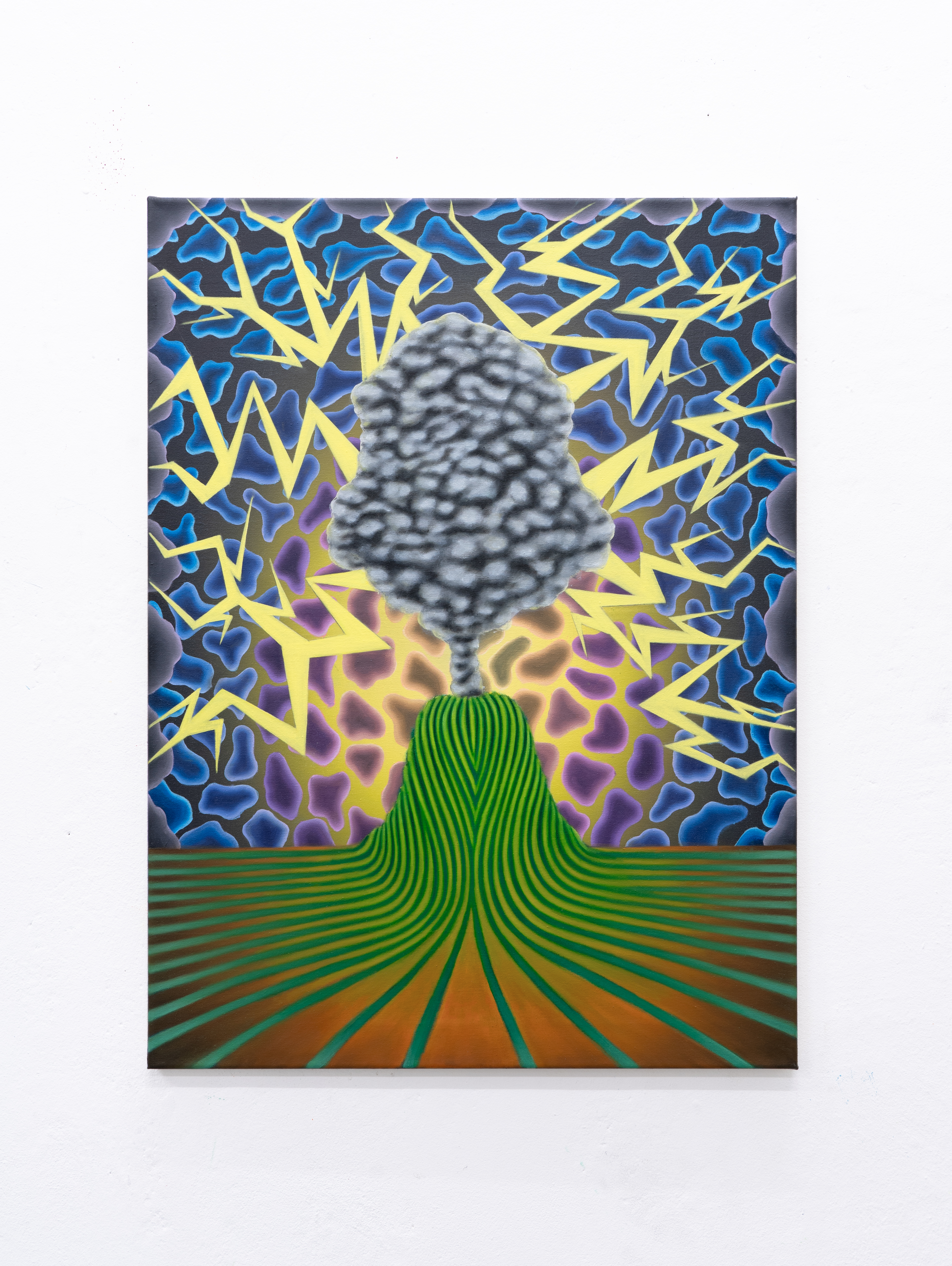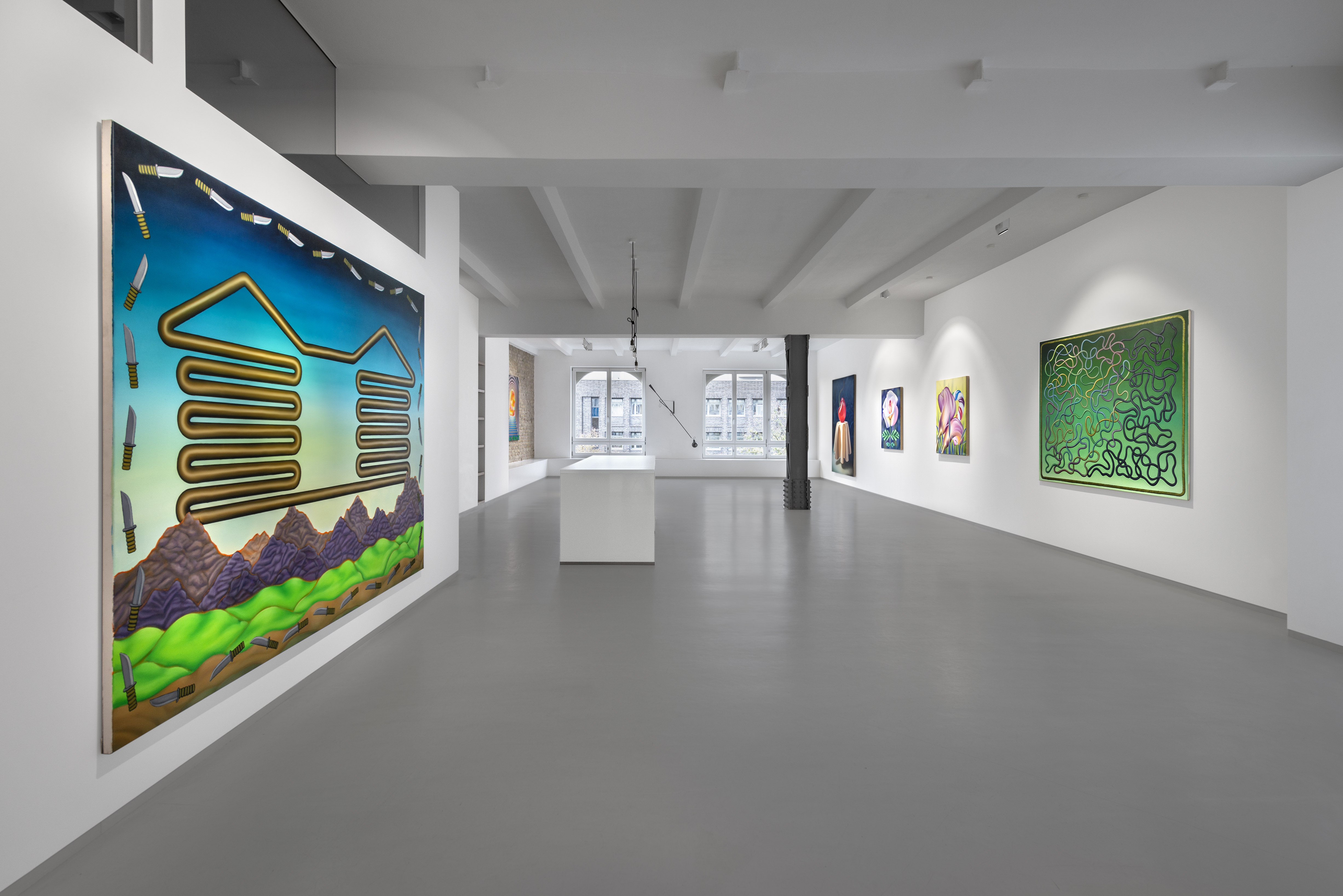 Mona Broschár's works are clearly structured, reduced and polished to a high gloss. Her quest for perfection reveals itself directly to the viewer. Her paintings depict creatures, objects, plants and food whose aesthetics are taken to such an extreme that they seem to come alive before our eyes. The works hover between the real and the imaginary, between immaculate beauty and a strange wonder that raises questions and hints at the threatening. Glowing eyes stare aggressively through dark branches at a seemingly floating table on which a large cherry is enthroned and from which a predatory cat's tail grows out instead of a stem. In a fine porcelain cup, oversized sausages threaten to burst at any moment. Cherries, sausages and cream are naturally combined. Mona Broschár's works reflect the desires, longings and cravings of our time from a personal perspective and activate countless visual and haptic sensory stimuli when viewed. The feast is served. Stefan Jeske's works, on the other hand, are equally tidy and orderly in their formal language, and show a limited repertoire of sometimes recurring objects. The result is a surreal pictorial world that subliminally carries human and socio-political thoughts that occupy the artist in his everyday life, but which do not reveal themselves on closer inspection. It smokes, it crashes, it burns. The titles of the works, which can be fragments of songs or messages, are an essential component. They frame each picture. Similar to populism, Stefan Jeske deliberately works with a naive and trivial processing of information. Here, however, the attempt to find simple answers to major global problems is based on acceptance and the awareness that it will probably never succeed. He makes the struggle with one's own thoughts visible and creates magical places where friction and resistance actually prevail. In the exhibition “Minor Threats”, Mona Broschár and Stefan Jeske present colourful and tense visual worlds in which superficiality plays a decisive role. A poppy, smooth aesthetic underlies the works, under which the threat lurks in silence. The number of pictorial objects is deliberately reduced in order not to overload the pictorial space. While Mona Boschár makes visible the excess and greed, the insatiable desire for beautiful things and food, Stefan Jeske deals with the noise, the countless contradictions and impressions in our society in a humorous and symbolic way. Both artistic positions comment on social conditions, starting from the object and a diffuse state, without being preachy or intrusive, always moving on the border between reality and fiction.