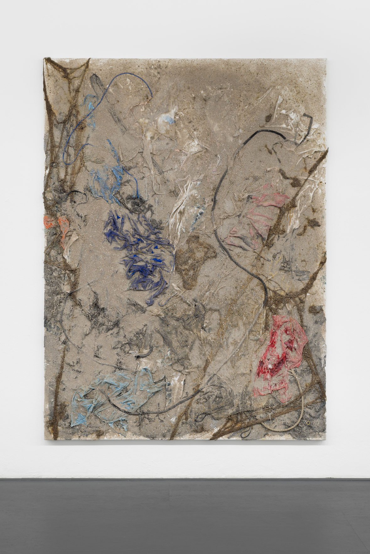 *VITA PARCOURS* encourages the viewer to navigate a display of almost athletic artworks. Freezing movements of materials is an essential part of Christopher Füllemann’s practice. The pieces on view at DUVE Berlin extend their visual purpose towards the power of inertia - however, they still flicker with the volatility of their original, moving nature.  Jens Einhorn has been using a maelstrom of fabrics, chains, strings, plastic bags, sand, and other unconventional materials to evoke a chaotic dynamic of things. Einhorn’s paintings function as hardly readable maps, but maps nonetheless: their composition can be read, trajectories can be followed: yet, it is unclear where they lead.